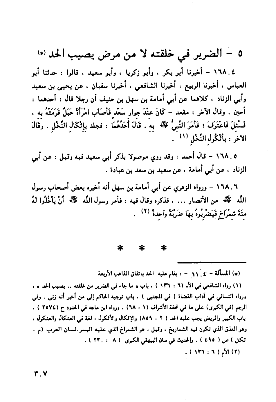 16804 - أَخْبَرَنَا أَبُو بَكْرٍ , وَأَبُو زَكَرِيَّا , وَأَبُو سَعِيدٍ , قَالُوا: حَدَّثَنَا أَبُو الْعَبَّاسِ , أَخْبَرَنَا الرَّبِيعُ , أَخْبَرَنَا الشَّافِعِيُّ , أَخْبَرَنَا سُفْيَانُ , عَنْ يَحْيَى بْنِ سَعِيدٍ , وَأَبِي الزِّنَادِ , كِلَاهُمَا عَنْ أَبِي أُمَامَةَ بْنِ سَهْلِ بْنِ حُنَيْفٍ , أَنَّ " رَجُلًا قَالَ أَحَدُهُمَا أَحْبَنُ , وَقَالَ الْآخَرُ: مُقْعَدٌ كَانَ عِنْدَ جِوَارِ سَعْدٍ فَأَصَابَ امْرَأَةً حَبَلٌ , فَرَمَتْهُ بِهِ , فَسُئِلَ فَاعْتَرَفَ , فَأَمَرَ النَّبِيُّ صَلَّى اللهُ عَلَيْهِ وَسَلَّمَ بِهِ , قَالَ أَحَدُهُمَا: §فَجُلِدَ بِإِثْكَالِ النَّخْلِ. وَقَالَ الْآخَرُ: بِأَثْكُولِ النَّخْلِ " ,