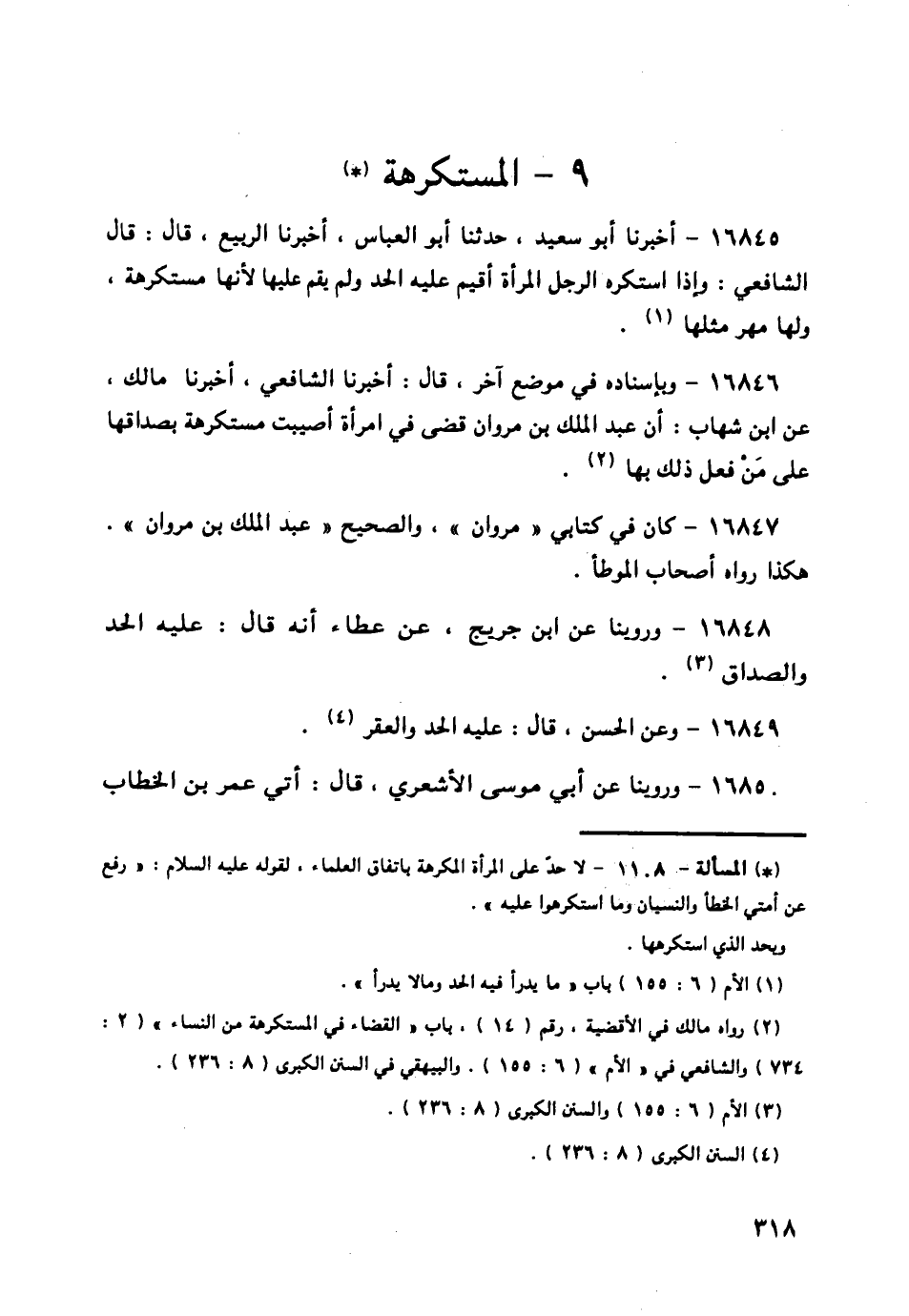16845 - أَخْبَرَنَا أَبُو سَعِيدٍ , حَدَّثَنَا أَبُو الْعَبَّاسِ , أَخْبَرَنَا الرَّبِيعُ , قَالَ: قَالَ الشَّافِعِيُّ: «وَإِذَا اسْتَكْرَهَ الرَّجُلُ الْمَرْأَةَ أُقِيمَ عَلَيْهِ الْحَدُّ , وَلَمْ يَقُمْ عَلَيْهَا لِأَنَّهَا مُسْتَكْرَهَةٌ , وَلَهَا مَهْرُ مِثْلَهَا»