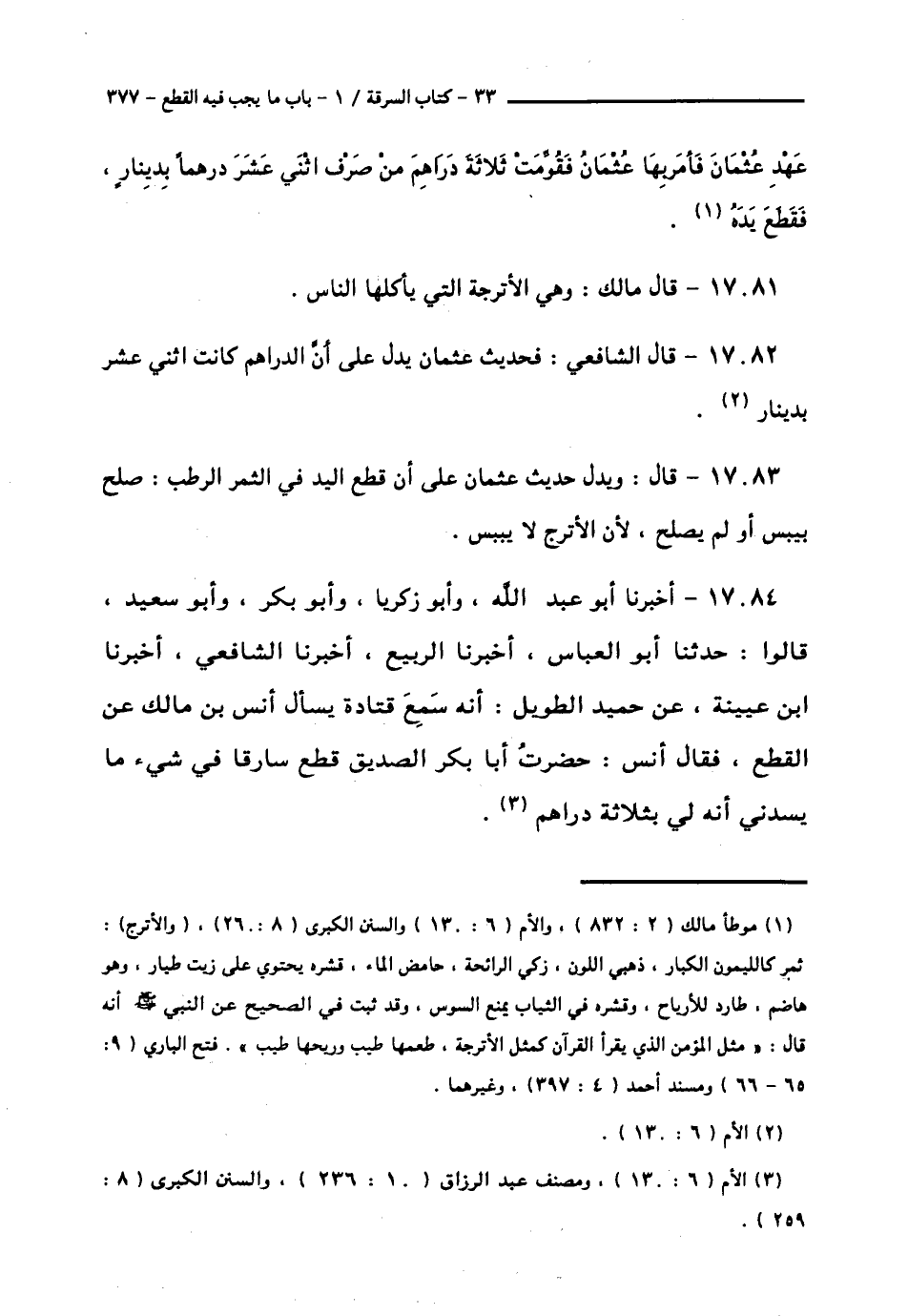 17084 - أَخْبَرَنَا أَبُو عَبْدِ اللَّهِ , وَأَبُو زَكَرِيَّا , وَأَبُو بَكْرٍ , وَأَبُو سَعِيدٍ , قَالُوا: حَدَّثَنَا أَبُو الْعَبَّاسِ , أَخْبَرَنَا الرَّبِيعُ , أَخْبَرَنَا الشَّافِعِيُّ , أَخْبَرَنَا ابْنُ عُيَيْنَةَ , عَنْ حُمَيْدِ الطَّوِيلِ: أَنَّهُ سَمِعَ قَتَادَةَ , يَسْأَلُ أَنَسَ بْنَ مَالِكٍ عَنِ الْقَطْعِ , فَقَالَ أَنَسٌ: حَضَرْتُ أَبَا بَكْرٍ الصِّدِّيقَ §قَطَعَ سَارِقًا فِي شَيْءٍ مَا يَسُدُّنِي أَنَّهُ لِي بِثَلَاثَةِ دَرَاهِمَ "