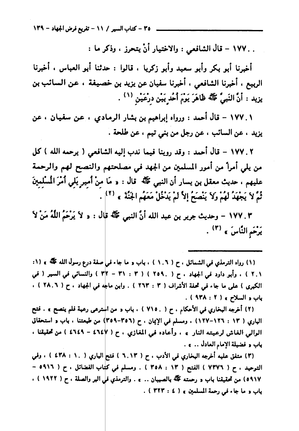 17700 - قَالَ الشَّافِعِيُّ: وَالِاخْتِيَارُ أَنْ يَتَحَرَّزَ، وَذَكَرَ مَا: أَخْبَرَنَا أَبُو بَكْرٍ، وَأَبُو سَعِيدٍ، وَأَبُو زَكَرِيَّا، قَالُوا: حَدَّثَنَا أَبُو الْعَبَّاسِ، أَخْبَرَنَا الرَّبِيعُ، أَخْبَرَنَا الشَّافِعِيُّ، أَخْبَرَنَا سُفْيَانُ، عَنْ يَزِيدَ بْنِ خُصَيْفَةَ، عَنِ السَّائِبِ بْنِ يَزِيدَ «أَنَّ النَّبِيَّ صَلَّى اللهُ عَلَيْهِ وَسَلَّمَ §ظَاهَرَ يَوْمَ أُحُدٍ بَيْنَ دِرْعَيْنِ»