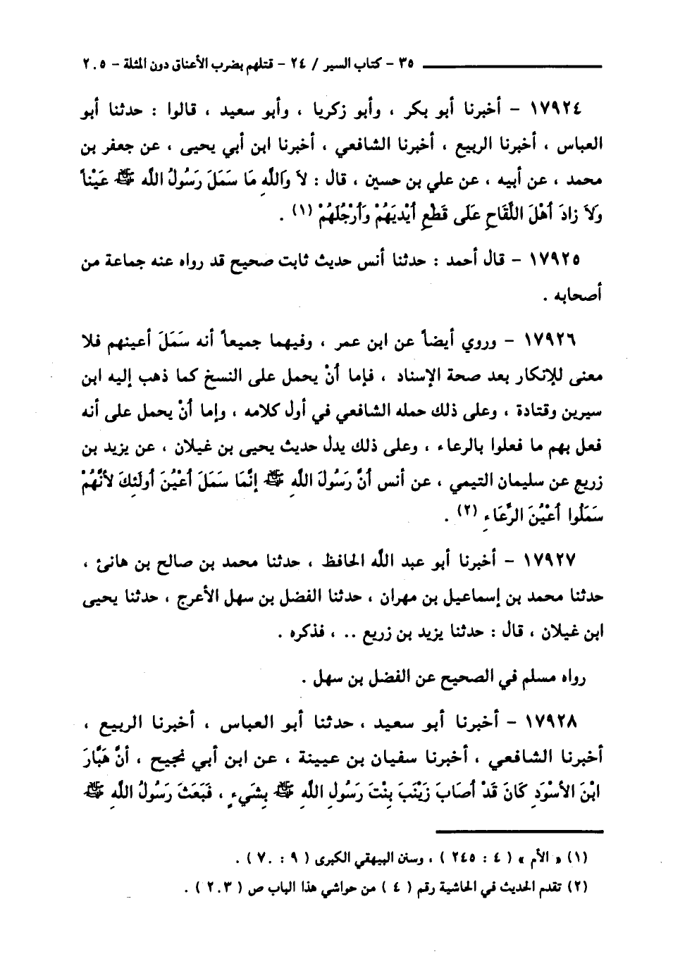 17926 - وَرُوِيَ أَيْضًا، عَنِ ابْنِ عُمَرَ، وَفِيهِمَا جَمِيعًا أَنَّهُ سَمَلَ أَعْيُنَهُمْ، فَلَا مَعْنَى لِلْإِنْكَارِ بَعْدَ صِحَّةِ الْإِسْنَادِ، فَإِمَّا أَنْ يُحْمَلَ عَلَى النَّسْخِ كَمَا ذَهَبَ إِلَيْهِ ابْنُ سِيرِينَ وَقَتَادَةُ، وَعَلَى ذَلِكَ حَمَلَهُ الشَّافِعِيُّ فِي أَوَّلِ كَلَامِهِ، وَإِمَّا أَنْ يُحْمَلَ عَلَى أَنَّهُ فَعَلَ بِهِمْ مَا فَعَلُوا بِالرِّعَاءِ