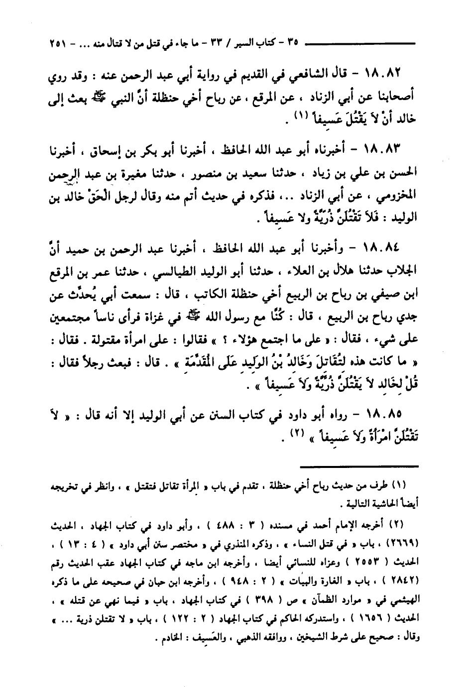 18082 - قَالَ الشَّافِعِيُّ فِي الْقَدِيمِ فِي رِوَايَةِ أَبِي عَبْدِ الرَّحْمَنِ عَنْهُ: وَقَدْ رَوَى أَصْحَابُنَا عَنْ أَبِي الزِّنَادِ، عَنِ الْمُرَقَّعِ، عَنْ رَبَاحٍ أَخِي حَنْظَلَةَ، أَنَّ النَّبِيَّ صَلَّى اللهُ عَلَيْهِ وَسَلَّمَ بَعَثَ إِلَى خَالِدٍ أَنْ §لَا يَقْتُلَ عَسِيفًا "