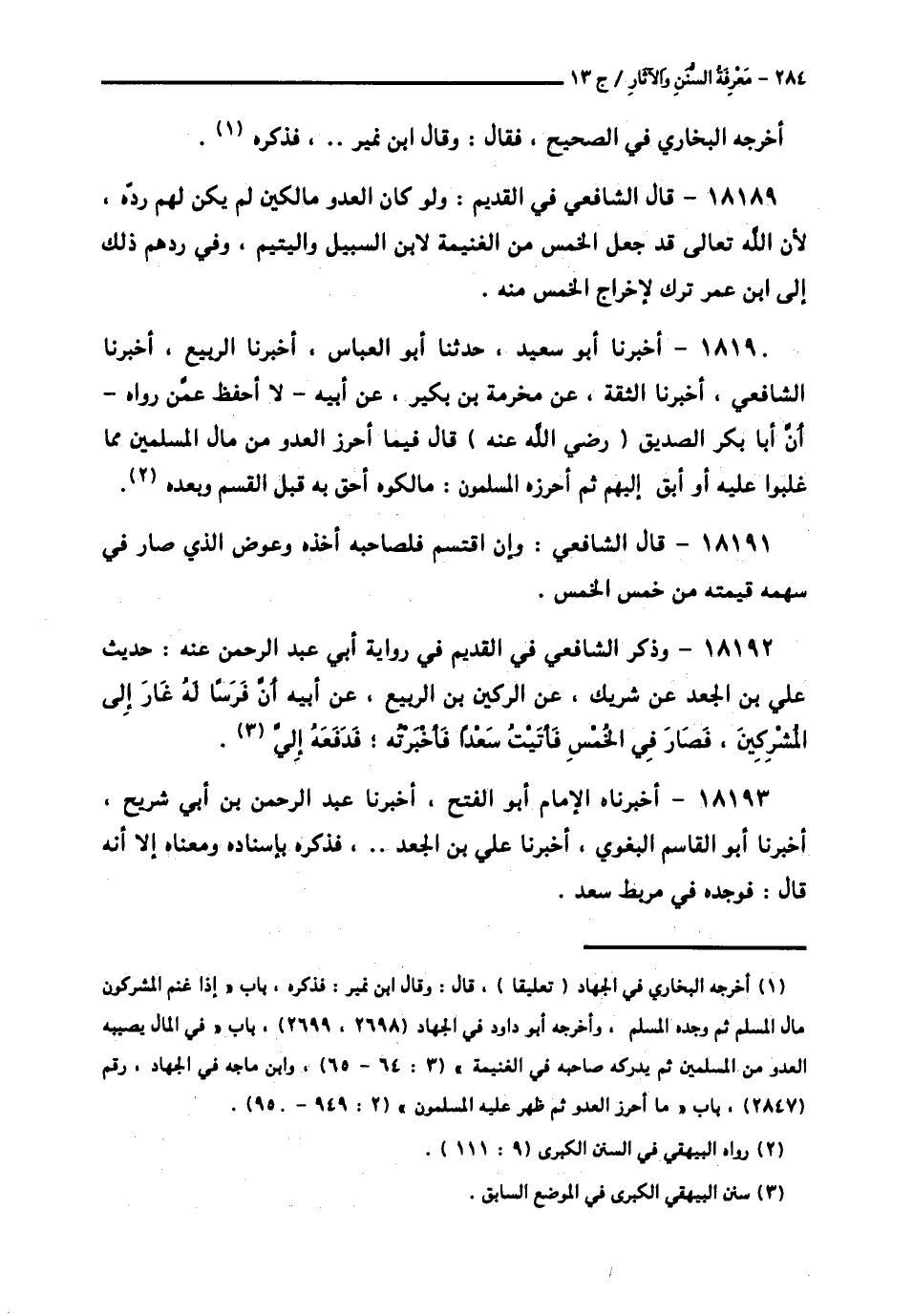 كتاب معرفة السنن والآثار (اسم الجزء: 13)