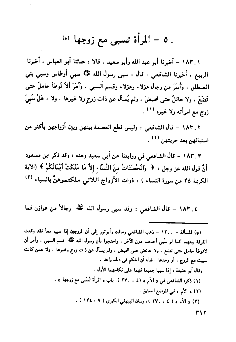 18304 - قَالَ الشَّافِعِيُّ: وَقَدْ سَبَى رَسُولُ اللَّهِ صَلَّى اللهُ عَلَيْهِ وَسَلَّمَ رِجَالًا مِنْ هَوَازِنَ، فَمَا -[313]- عَلِمْنَاهُ سَأَلَ عَنْ أَزْوَاجِ الْمَسْبِيَّاتِ أَسُبُوا مَعَهُنَّ أَوْ قَبْلَهُنَّ أَوْ بَعْدَهُنَّ أَوْ لَمْ يُسْبُوا، وَلَوْ كَانَ فِي أَزْوَاجِهِنَّ مَعْنًى لَسَأَلَ عَنْهُ إِنْ شَاءَ اللَّهُ