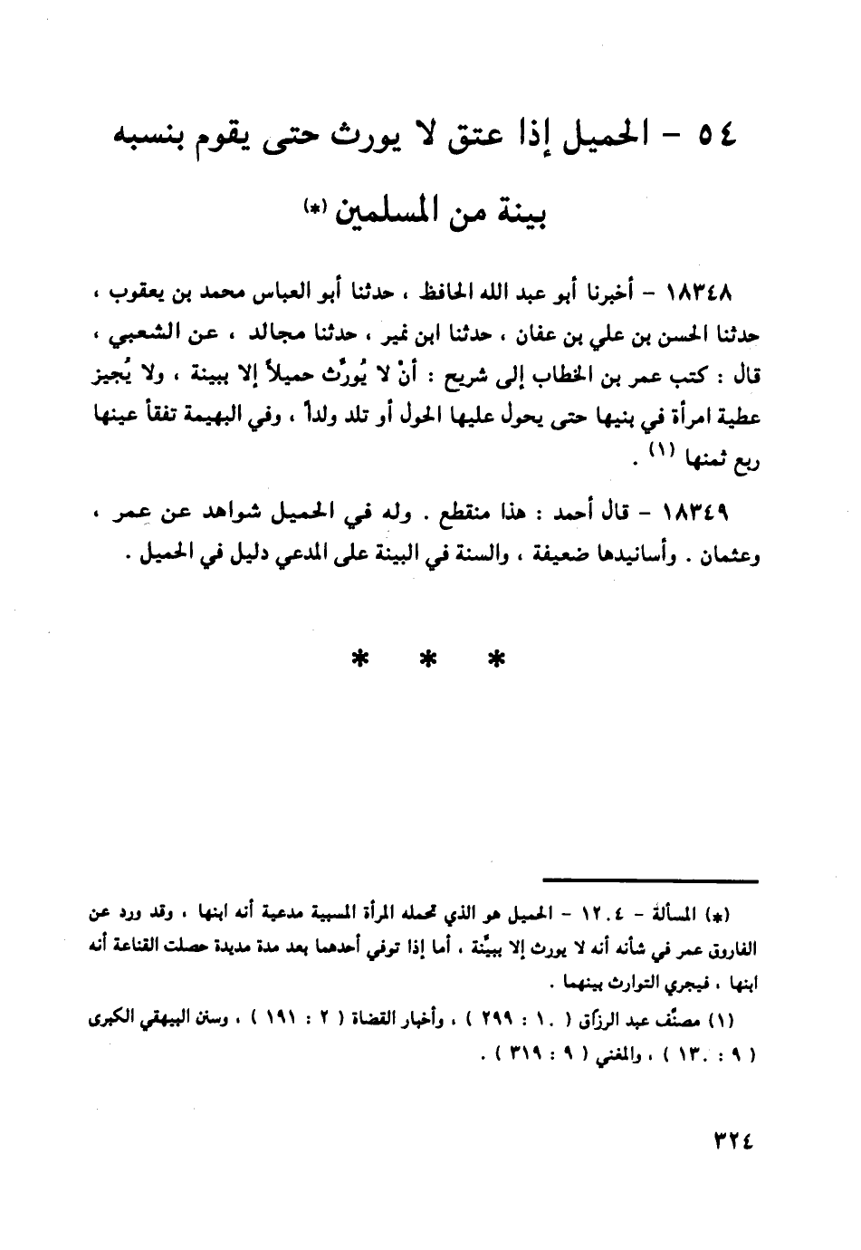 §الْحَمِيلُ إِذَا عُتِقَ لَا يُورِّثُ حَتَّى يَقُومَ بِنَسَبِهِ بَيِّنَةٌ مِنَ الْمُسْلِمِينَ