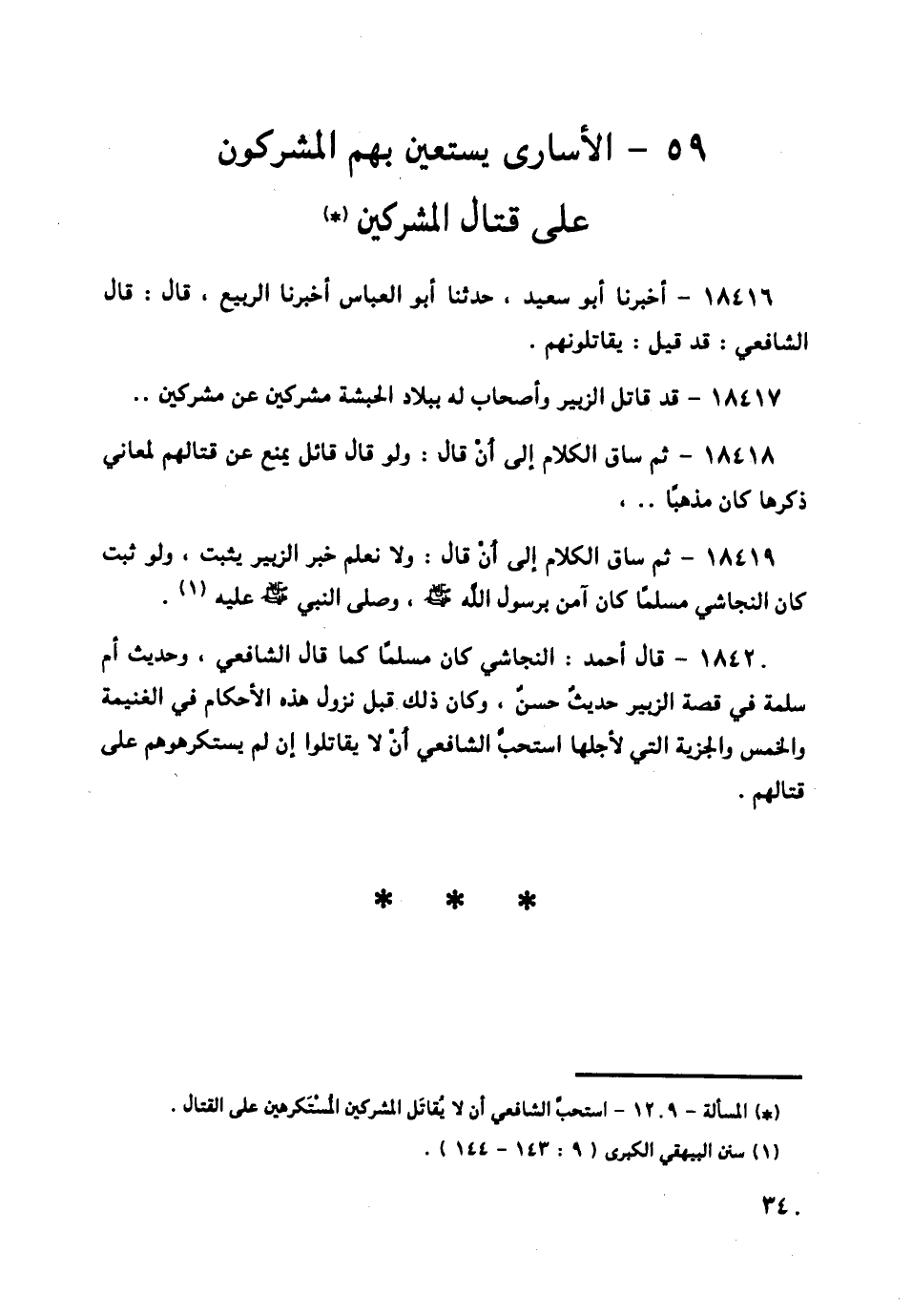 18420 - قَالَ أَحْمَدُ: النَّجَاشِيُّ كَانَ مُسْلِمًا كَمَا قَالَ الشَّافِعِيُّ: وَحَدِيثُ أُمِّ سَلَمَةَ فِي قِصَّةِ الزُّبَيْرِ حَدِيثٌ حَسَنٌ، وَكَانَ ذَلِكَ قَبْلَ نُزُولِ هَذِهِ الْأَحْكَامِ فِي الْغَنِيمَةِ وَالْخُمُسِ وَالْجِزْيَةِ الَّتِي لِأَجْلِهَا اسْتَحَبَّ الشَّافِعِيُّ أَنْ لَا يُقَاتِلُوا إِنْ لَمْ يَسْتَكْرِهُوهُمْ عَلَى قِتَالِهِمْ