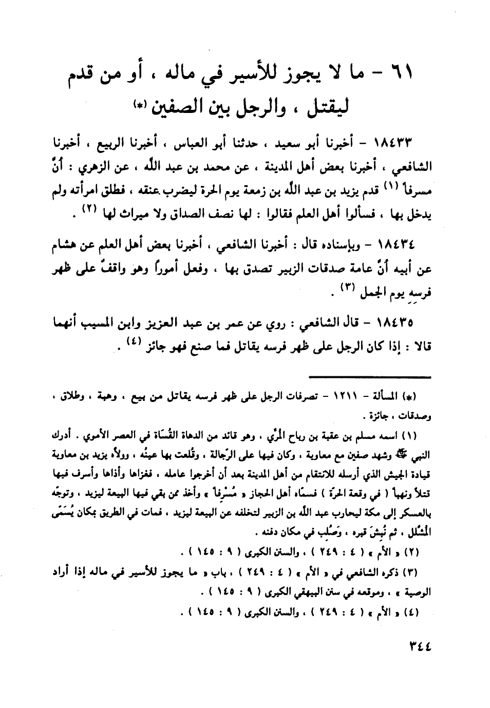 18434 - وَبِإِسْنَادِهِ قَالَ: أَخْبَرَنَا الشَّافِعِيُّ، أَخْبَرَنَا بَعْضُ، أَهْلِ الْعِلْمِ، عَنْ هِشَامٍ، عَنْ أَبِيهِ، أَنَّ عَامَّةَ §صَدَقَاتِ الزُّبَيْرِ تَصَدَّقَ بِهَا وَفَعَلَ أُمُورًا وَهُوَ وَاقِفٌ عَلَى ظَهْرِ فَرَسِهِ يَوْمَ الْجَمَلِ