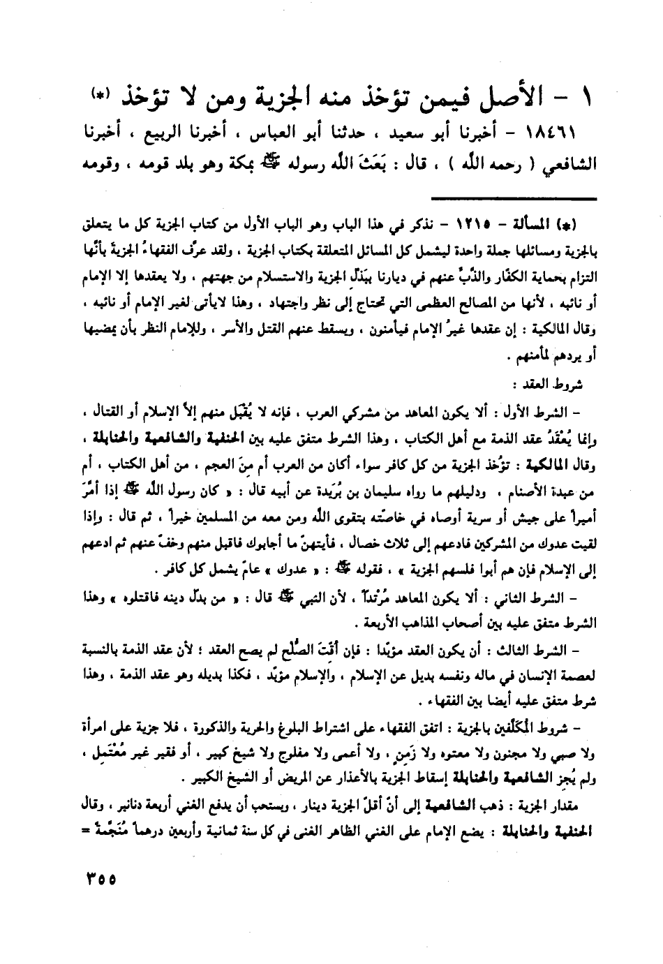 §الْأَصْلُ فِيمَنْ تُؤْخَذُ مِنْهُ الْجِزْيَةُ وَمَنْ لَا تُؤْخَذُ