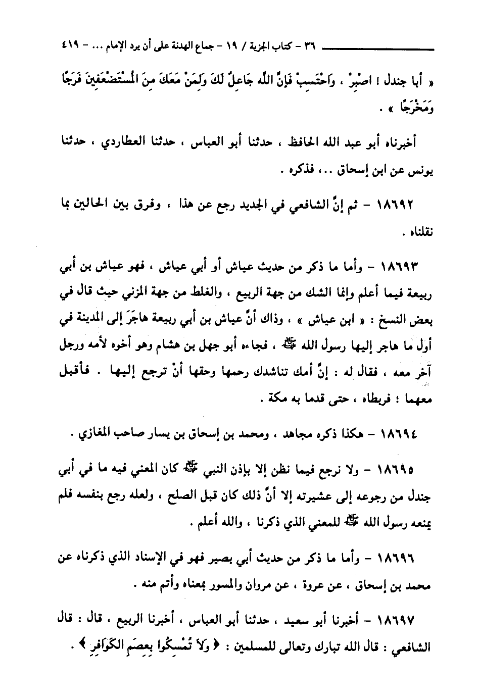 18697 - أَخْبَرَنَا أَبُو سَعِيدٍ، حَدَّثَنَا أَبُو الْعَبَّاسِ، أَخْبَرَنَا الرَّبِيعُ قَالَ: قَالَ الشَّافِعِيُّ: " قَالَ اللَّهُ تَبَارَكَ وَتَعَالَى لِلْمُسْلِمِينَ: {§وَلَا تُمْسِكُوا بِعِصَمِ الْكَوَافِرِ} [الممتحنة: 10]