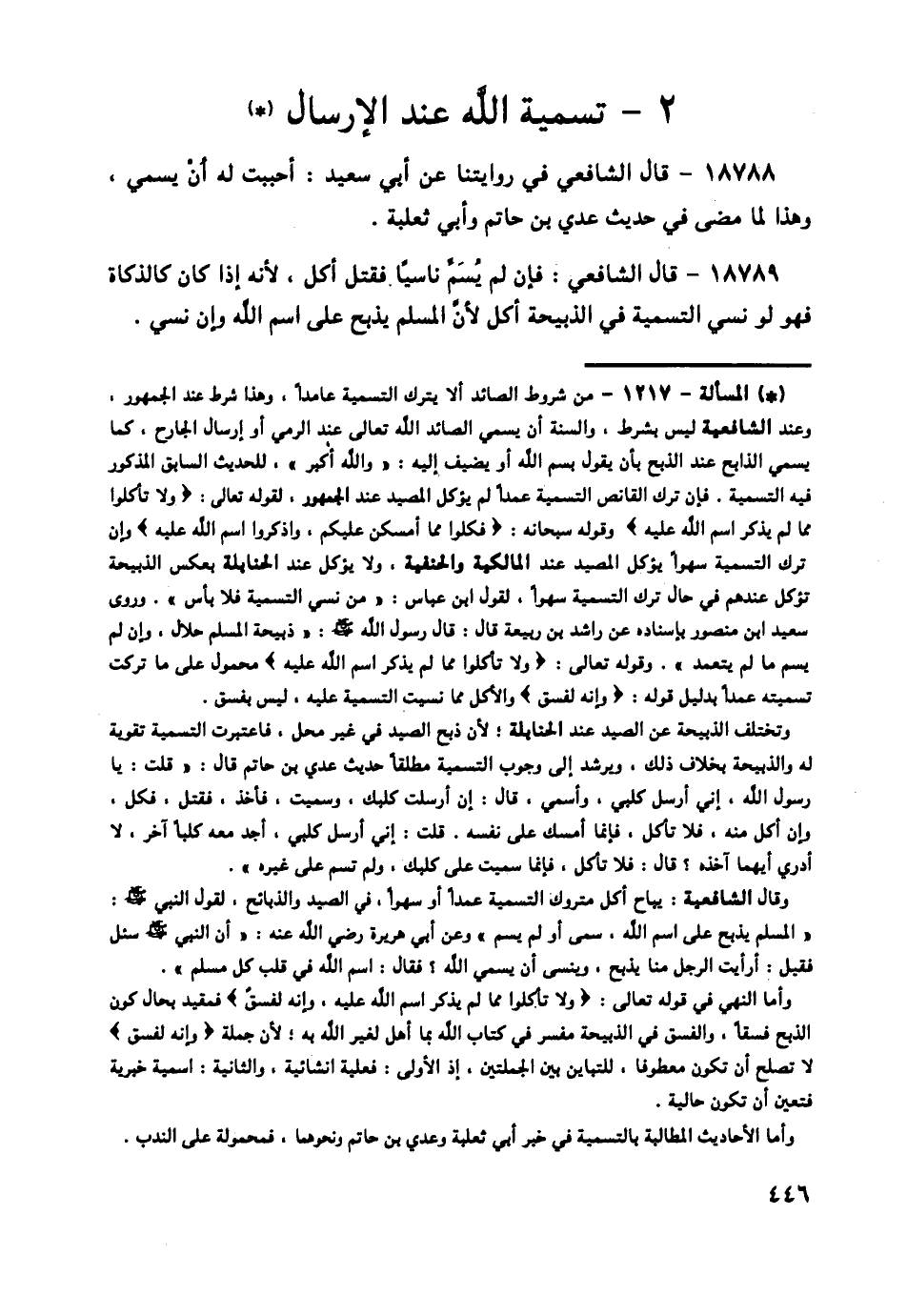 §تَسْمِيَةُ اللَّهِ عِنْدَ الْإِرْسَالِ