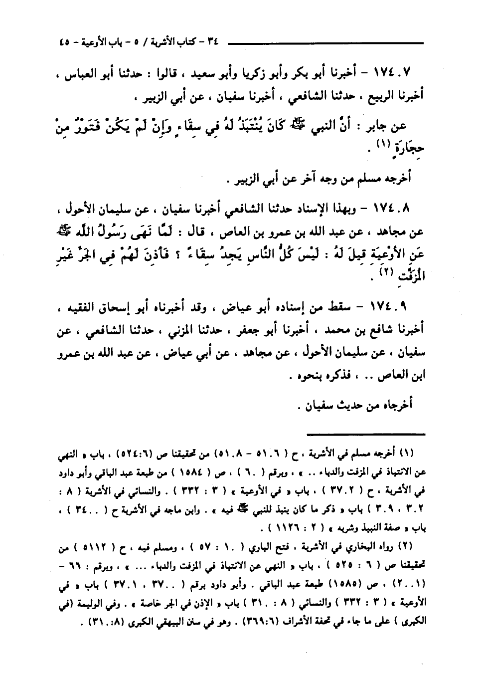 17408 - وَبِهَذَا الْإِسْنَادِ حَدَّثَنَا الشَّافِعِيُّ، أَخْبَرَنَا سُفْيَانُ، عَنْ سُلَيْمَانَ الْأَحْوَلِ، عَنْ مُجَاهِدٍ، عَنْ عَبْدِ اللَّهِ بْنِ عَمْرِو بْنِ الْعَاصِ قَالَ: «لَمَّا §نَهَى رَسُولُ اللَّهِ صَلَّى اللهُ عَلَيْهِ وَسَلَّمَ عَنِ الْأَوْعِيَةِ» قِيلَ لَهُ: لَيْسَ كُلُّ النَّاسِ يَجِدُ سِقَاءً؟ «فَأَذِنَ لَهُمْ فِي الْجَرِّ غَيْرِ الْمُزَفَّتِ»