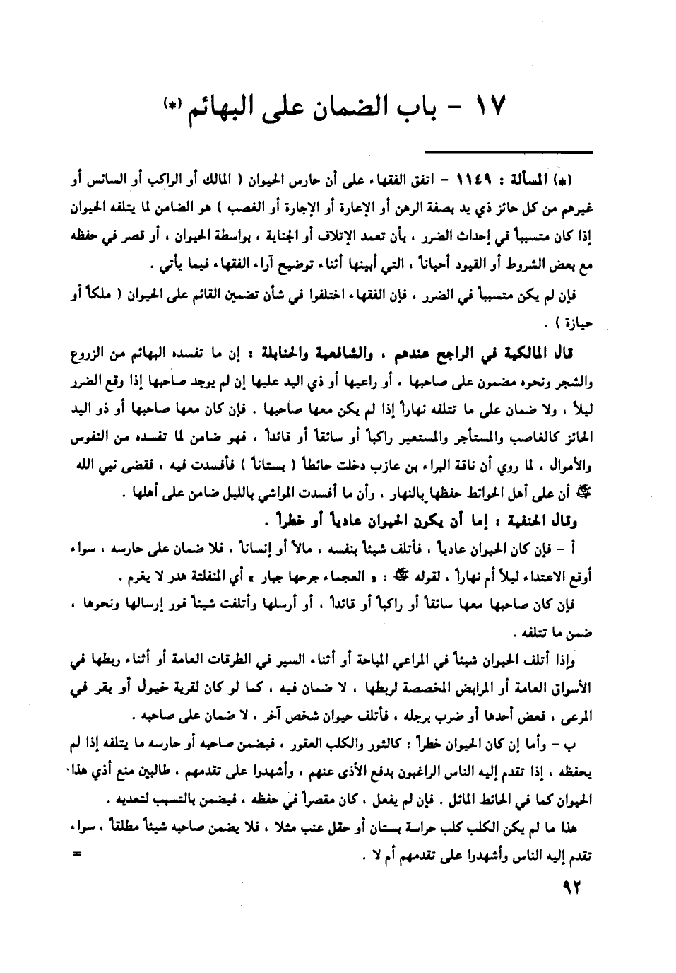 §بَابُ الضَّمَانِ عَلَى الْبَهَائِمِ