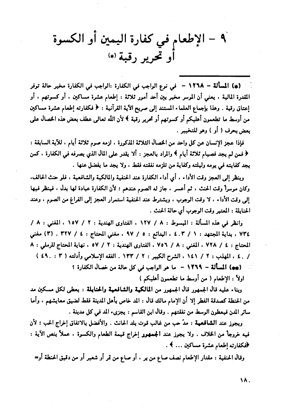 §الْإِطْعَامُ فِي كَفَّارَةِ الْيَمِينِ، أَوِ الْكِسْوَةُ، أَوْ تَحْرِيرُ رَقَبَةٍ -[181]-