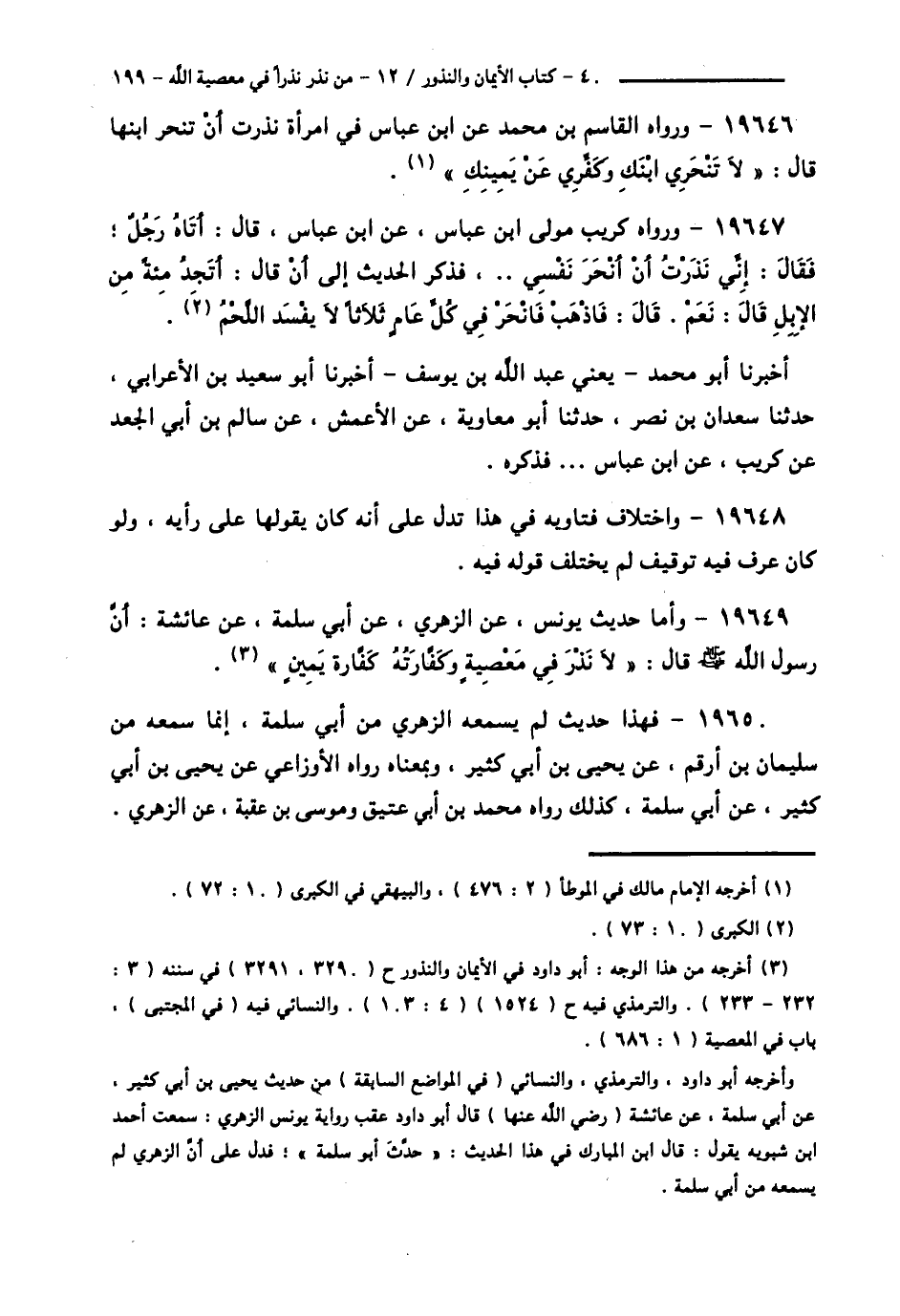 19653 - وَكَذَلِكَ رَوَاهُ حَمَّادُ بْنُ زَيْدٍ، عَنْ مُحَمَّدِ بْنِ الزُّبَيْرِ، وَرَوَاهُ ابْنُ أَبِي عَرُوبَةَ، عَنْ مُحَمَّدِ بْنِ الزُّبَيْرِ وَقَالَ: «لَا نَذْرَ فِي مَعْصِيَةِ اللَّهِ»