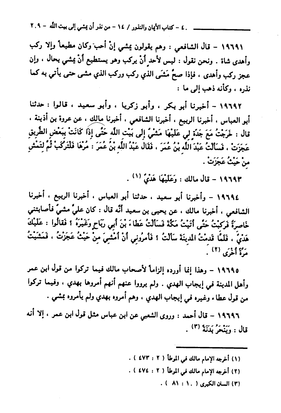 19695 - وَهَذَا إِنَّمَا أَوْرَدَهُ إِلْزَامًا لِأَصْحَابِ مَالِكٍ فِيمَا تَرَكُوا مِنْ قَوْلِ ابْنِ عُمَرَ وَأَهْلِ الْمَدِينَةِ فِي إِيجَابِ الْهَدْيِ، وَلَمْ يَرْوُوا عَنْهُمْ أَنَّهُمْ أَمَرُوهَا بِهَدْيٍ، وَفِيمَا تَرَكُوا مِنْ قَوْلِ عَطَاءٍ وَغَيْرِهِ فِي إِيجَابِ الْهَدْيِ، وَهُمْ أَمَرُوهُ بِهَدْيٍ، وَلَمْ يَأْمُرُوهُ بِمَشْيٍ