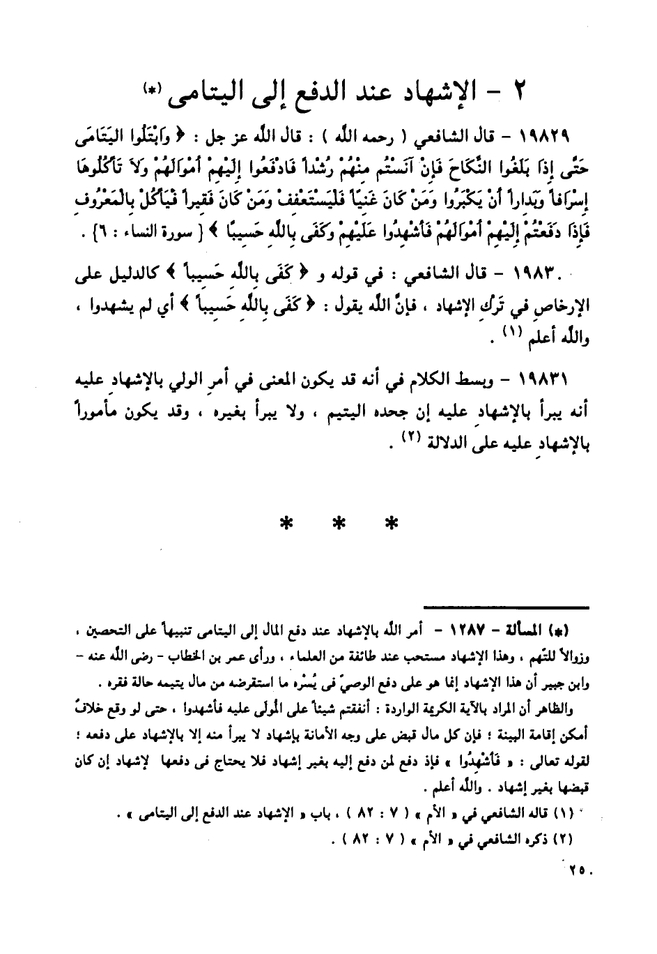 §الْإِشْهَادُ عِنْدَ الدَّفْعِ إِلَى الْيَتَامَى