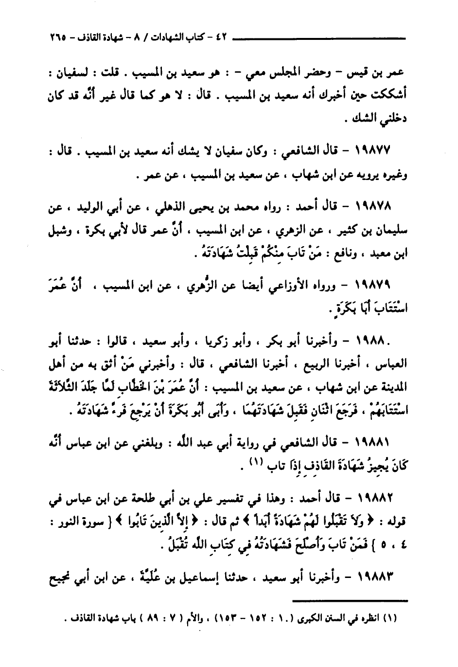 19881 - قَالَ الشَّافِعِيُّ فِي رِوَايَةِ أَبِي عَبْدِ اللَّهِ: وَبَلَغَنِي عَنِ ابْنِ عَبَّاسٍ، أَنَّهُ «كانَ يُجِيزُ شَهَادَةَ الْقَاذِفِ إِذَا تَابَ»