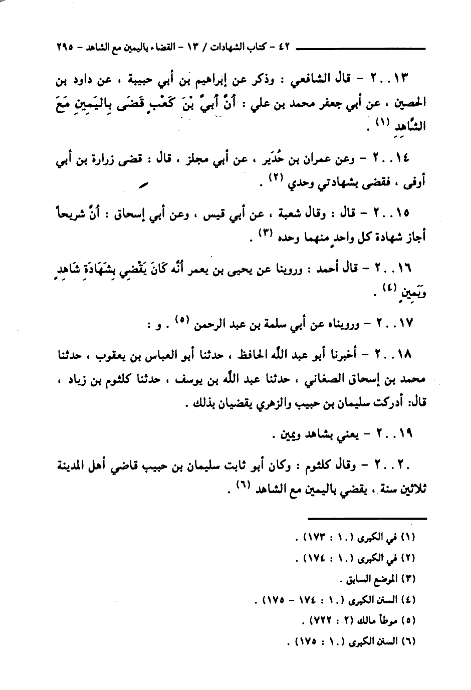 20018 - أَخْبَرَنَا أَبُو عَبْدِ اللَّهِ الْحَافِظُ، حَدَّثَنَا أَبُو الْعَبَّاسِ بْنُ يَعْقُوبَ، حَدَّثَنَا مُحَمَّدُ بْنُ إِسْحَاقَ الصَّغَانِيُّ، حَدَّثَنَا عَبْدُ اللَّهِ بْنُ يُوسُفَ، حَدَّثَنَا كُلْثُومُ بْنُ زِيَادٍ قَالَ: «أَدْرَكْتُ سُلَيْمَانَ بْنَ حَبِيبٍ وَالزُّهْرِيَّ §يَقْضِيَانِ بِذَلِكَ،