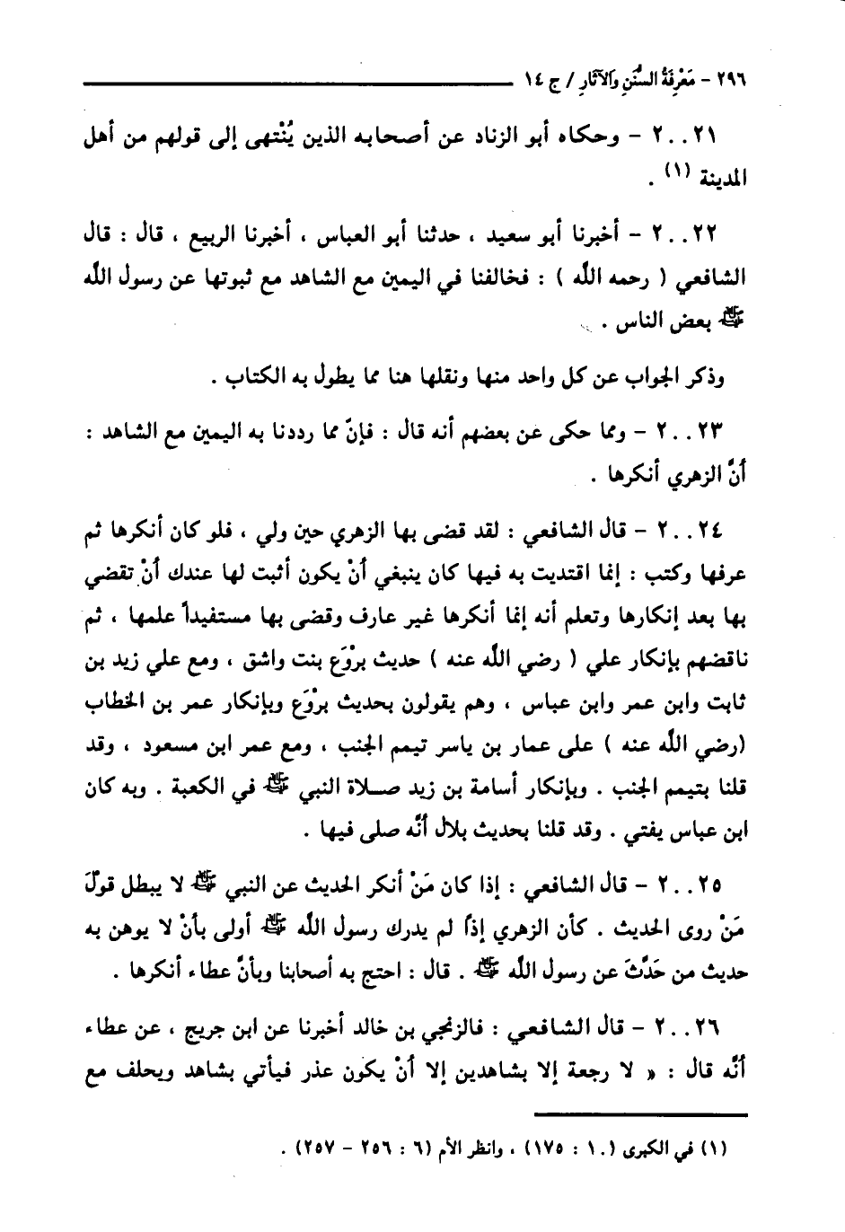 20022 - أَخْبَرَنَا أَبُو سَعِيدٍ، حَدَّثَنَا أَبُو الْعَبَّاسِ، أَخْبَرَنَا الرَّبِيعُ قَالَ: قَالَ الشَّافِعِيُّ رَحِمَهُ اللَّهُ: § «فَخَالَفَنَا فِي الْيَمِينِ مَعَ الشَّاهِدِ مَعَ ثُبُوتِهَا عَنْ رَسُولِ اللَّهِ صَلَّى اللهُ عَلَيْهِ وَسَلَّمَ بَعْضُ النَّاسِ» وَذَكَرَ الْجَوَابَ عَنْ كُلِّ وَاحِدٍ مِنْهَا، وَنَقْلُهَا هُنَا مِمَّا يَطُولُ بِهِ الْكِتَابُ
