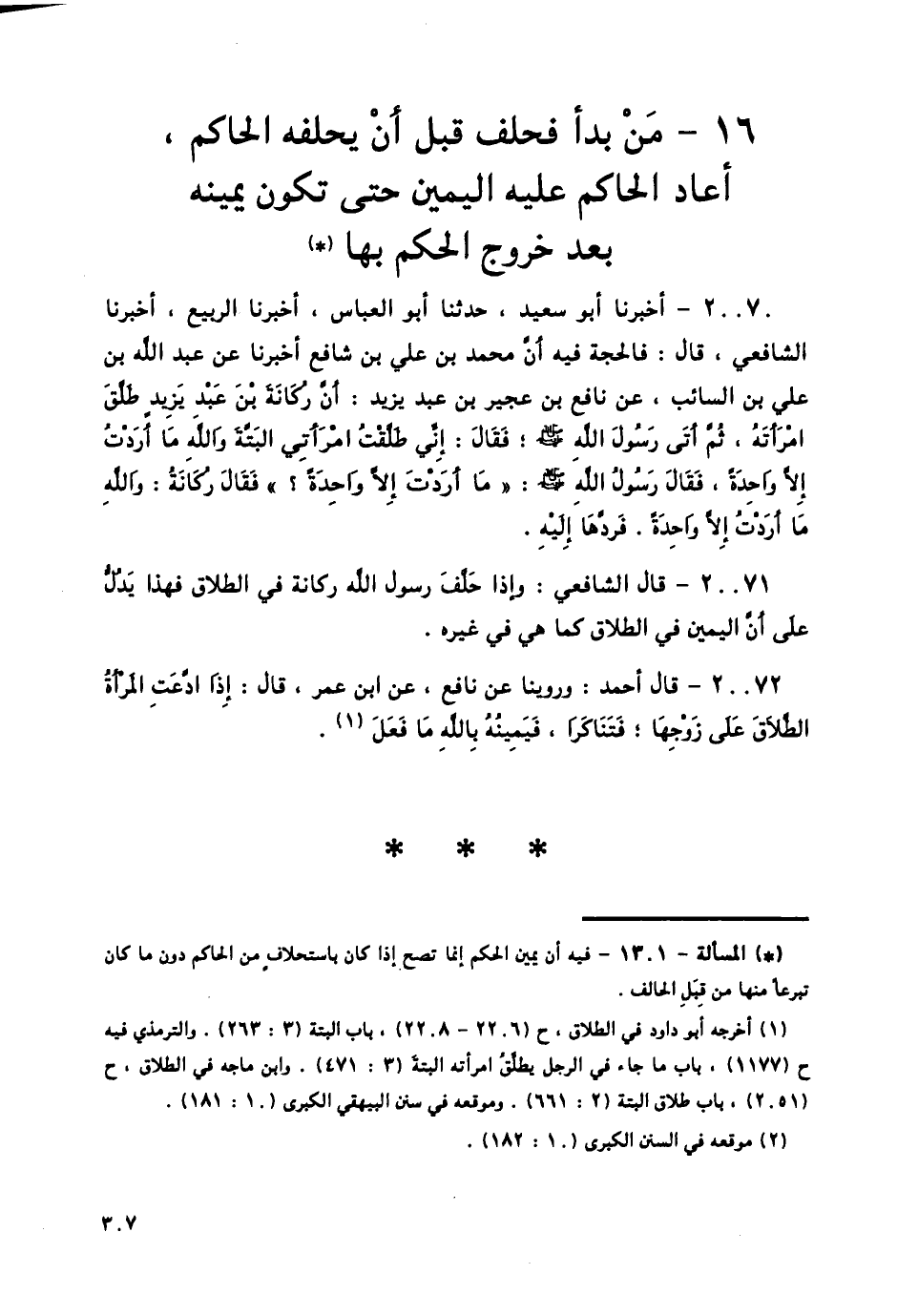 20071 - قَالَ الشَّافِعِيُّ: وَإِذَا حَلَّفَ رَسُولُ اللَّهِ رُكَانَةَ فِي الطَّلَاقِ فَهَذَا يَدُلُّ عَلَى أَنَّ الْيَمِينَ فِي الطَّلَاقِ كَمَا هِيَ فِي غَيْرِهِ