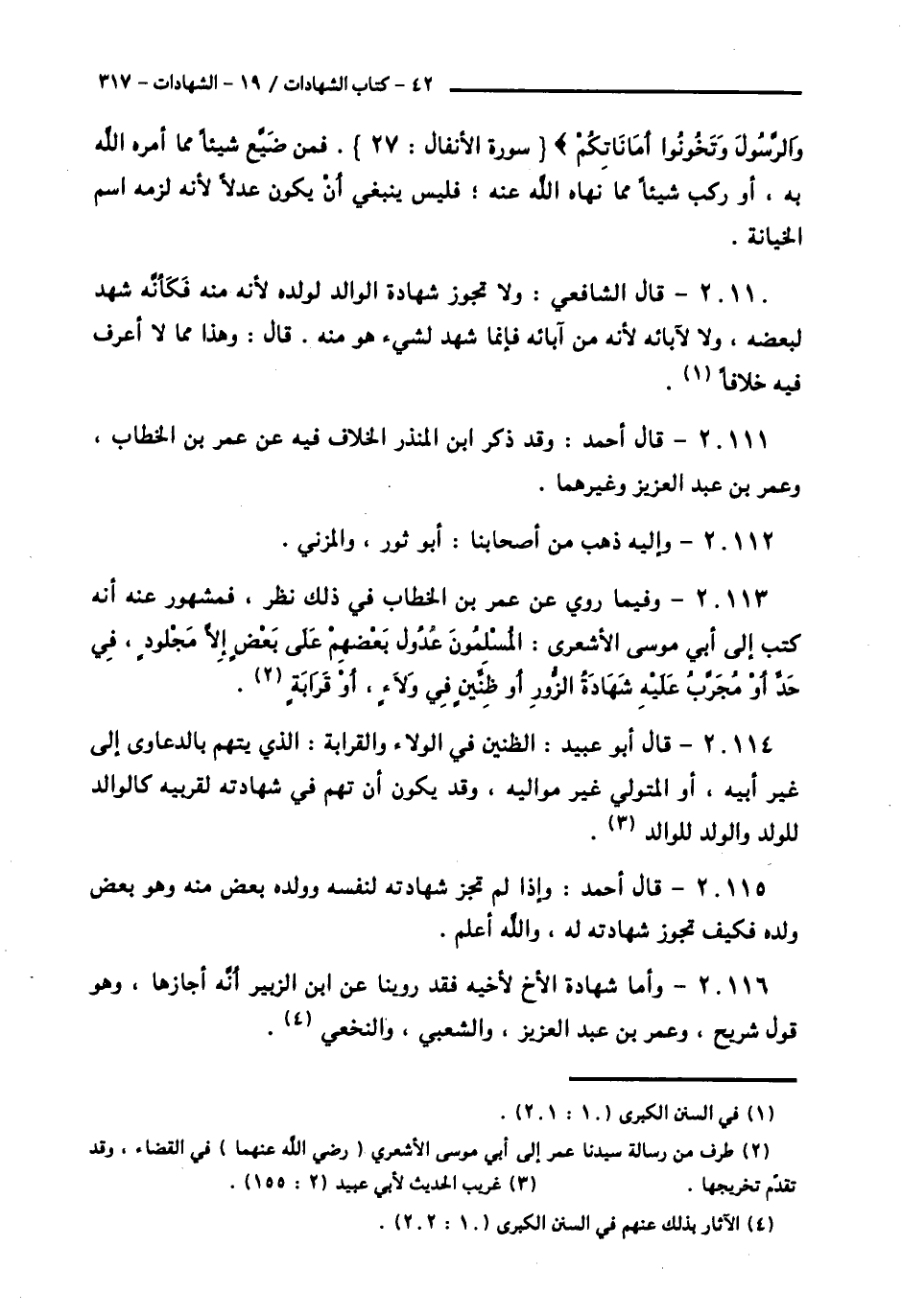 20113 - وَفِيمَا رُوِيَ عَنْ عُمَرَ بْنِ الْخَطَّابِ فِي ذَلِكَ نَظَرٌ، فَمَشْهُورٌ عَنْهُ أَنَّهُ كَتَبَ إِلَى أَبِي مُوسَى الْأَشْعَرِيِّ: § «الْمُسْلِمُونَ عُدُولٌ بَعْضُهُمْ عَلَى بَعْضٍ إِلَّا مَجْلُودًا فِي حَدٍّ، أَوْ مُجَرَّبًا عَلَيْهِ شَهَادَةُ الزُّورِ، أَوْ ظِنِّينًا فِي وَلَاءٍ أَوْ قَرَابَةٍ»