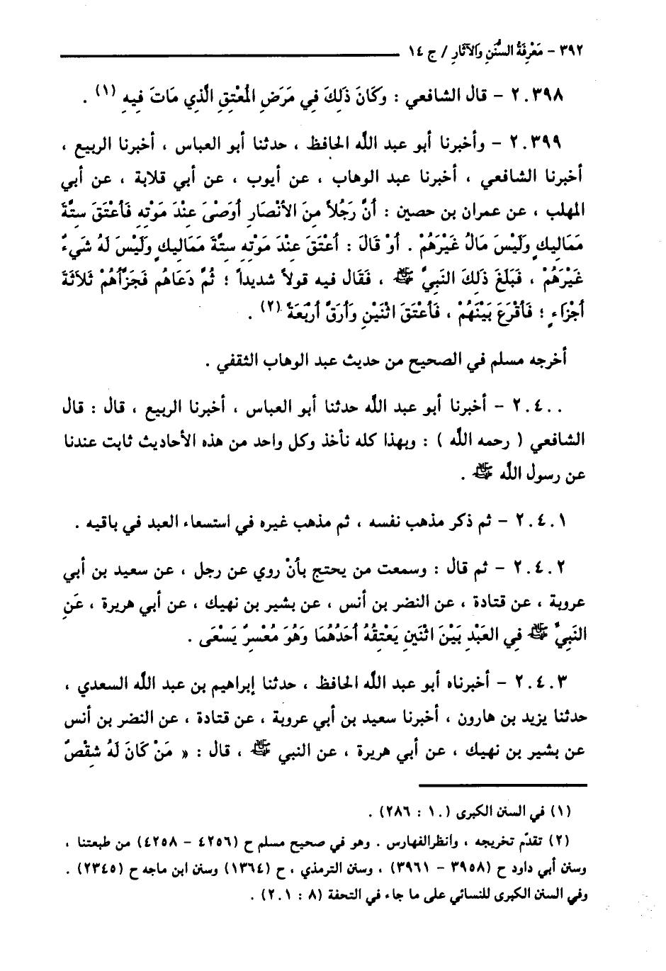 كتاب معرفة السنن والآثار (اسم الجزء: 14)