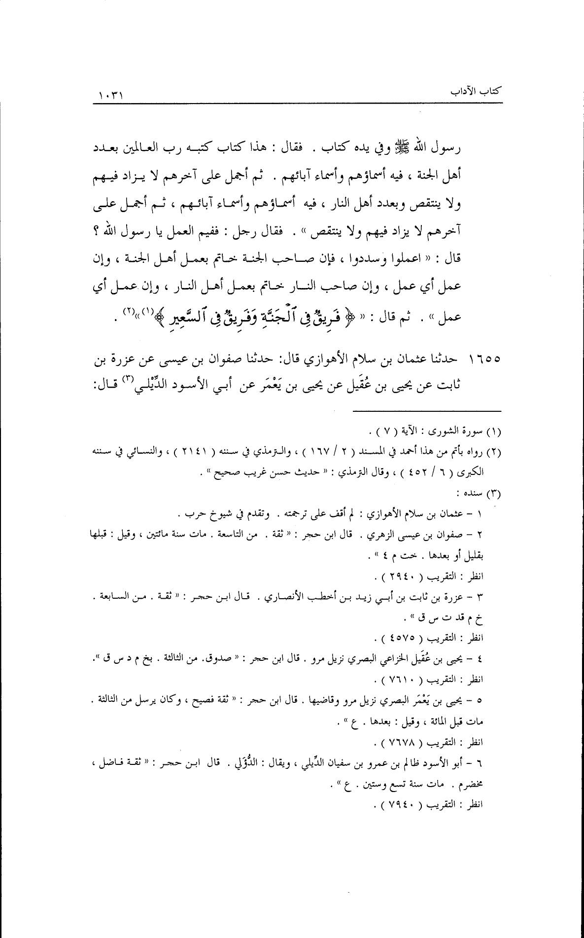 حدثنا عثمان بن سلام الأهوازي، قال: حدثنا صفوان بن عيسى، عن عزرة بن ثابت، عن يحيى بن عقيل، عن يحيى بن يعمر، عن أبي الأسود الديلي قال:
