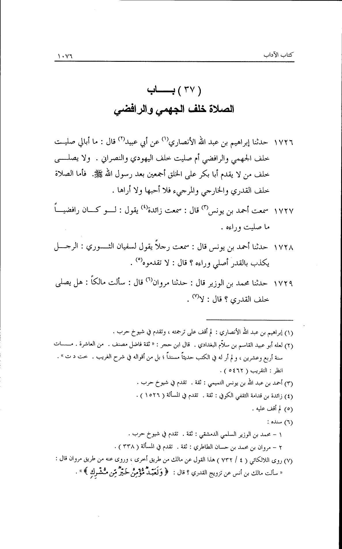 باب: الصلاة خلف الجهمي والرافضي