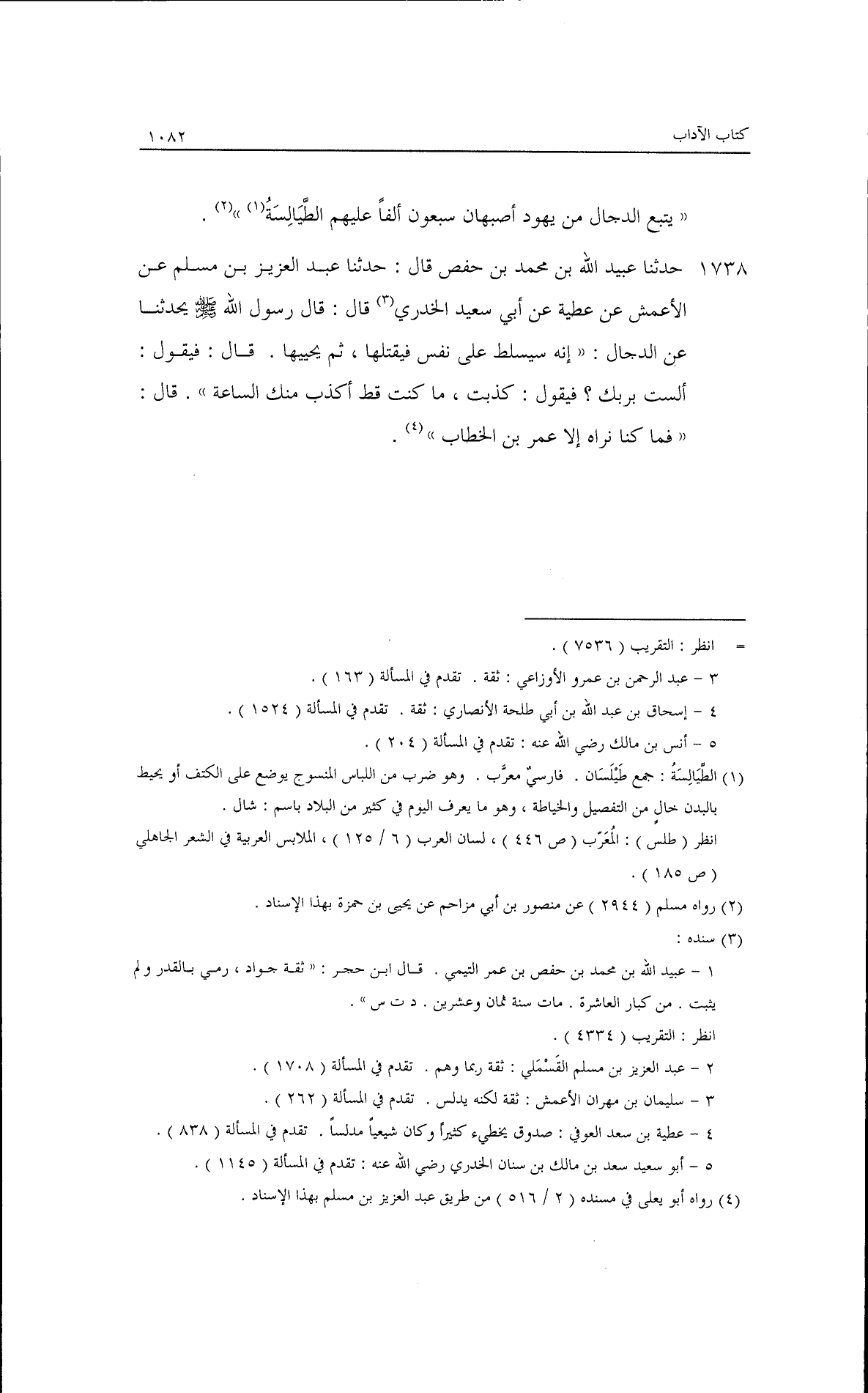 ((يتبع الدجال من يهود أصبهان سبعون ألفًا عليهم الطيالسة)).