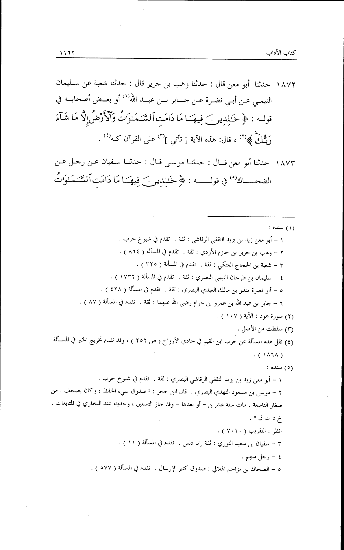 حدثنا أبو معن، قال: حدثنا وهب بن جرير، قال: حدثنا شعبة، عن سليمان التيمي، عن أبي نضرة، عن جابر بن عبد الله أو بعض أصحابه في قوله: {خَالِدِينَ فِيهَا مَا دَامَتِ السَّمَاوَاتُ