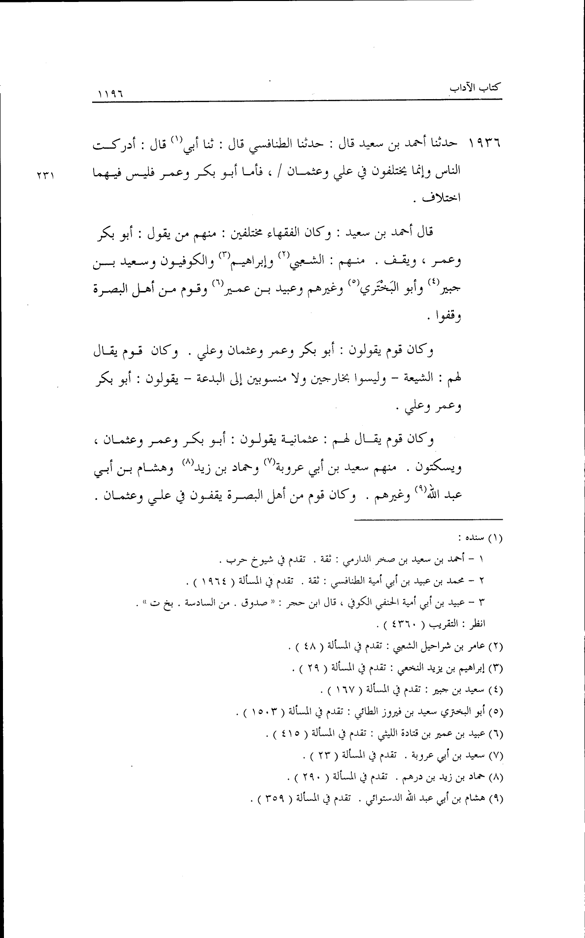 حدثنا نصير بن الفرج، قال: حدثنا أبو داود الجعفري، قال: حدثنا مسعر، عن عبد الملك بن ميسرة، عن النزال بن سبرة قال: سمعت عبد الله بن مسعود يقول حين استخلف عثمان: أمِّرنا خير من بقي ولم نألوا. قلت لإسحاق: قول النبي - صلى الله عليه وسلم - لعلي: ((أنت عون لي على عقر حوضي)) قال: هو في الدنيا يزود عنه، ويدعو إليه، ويبين لهم، ونحو ذلك من الكلام إلا أنه في الدنيا.