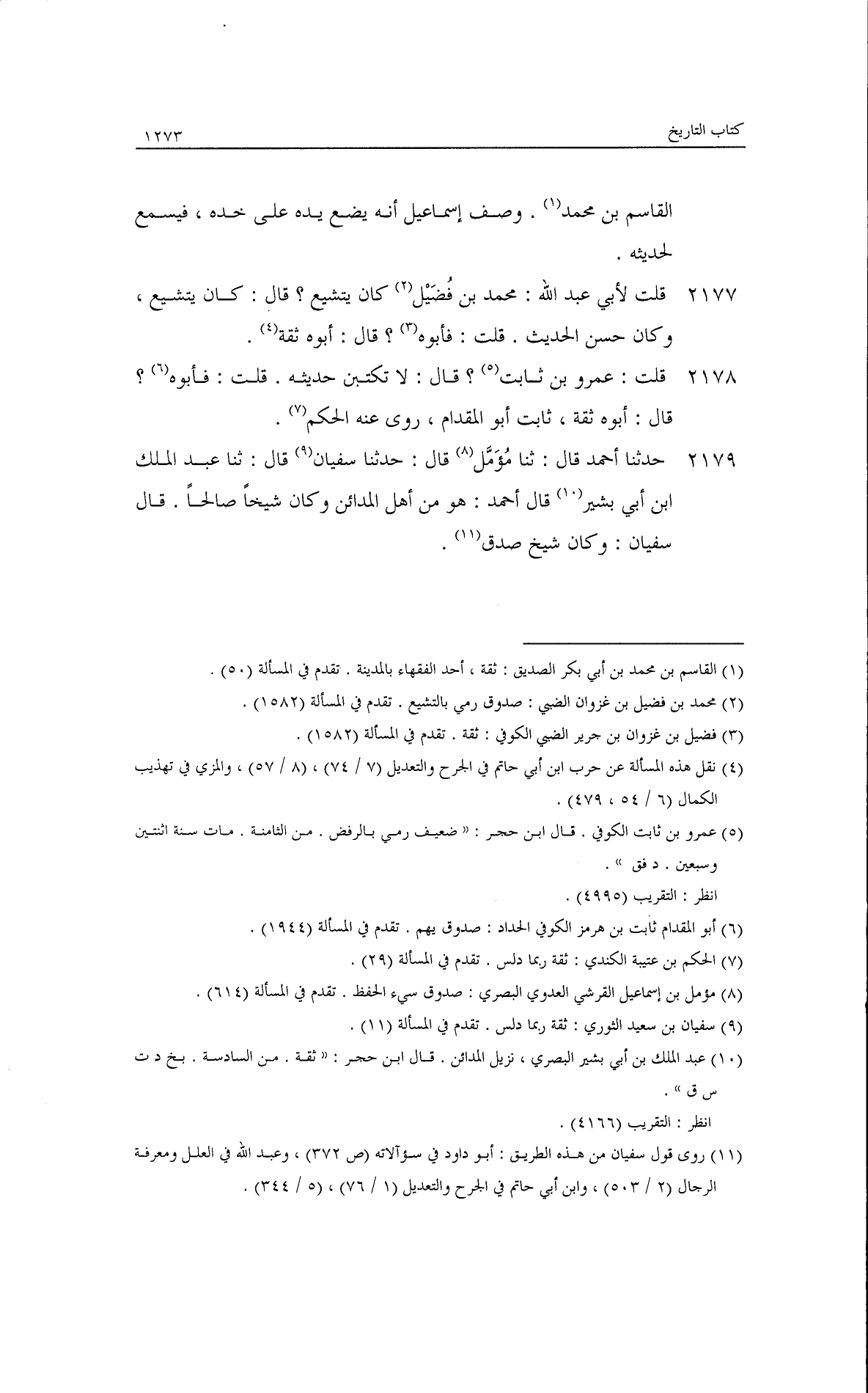 قال أبو محمد: وحدثنا أبو جعفر الدارمي قال: حدثنا أحمد بن سليمان قال: قال أبو بدر: قال سفيان: كان عند طلحة نحو من خمسمائة حديث، وعند زبيد مائة حديث. وحدثنا أبو جعفر قال: ثنا أحمد بن سليمان قال: ثنا/244/ابن علية قال: ثنا ابن عون، عن محمد قال: لو يعلم أيوب من حميد بن هلا ل ما أعلم ما حدث عنه. قال إسماعيل: قال لي شعبة: كان حميد على السوق أو غيرها فأنشأ السيرة. قال إسماعيل: وحدثنا ابن عون قال: كان ربيعة الرأي إذا تكلم عند