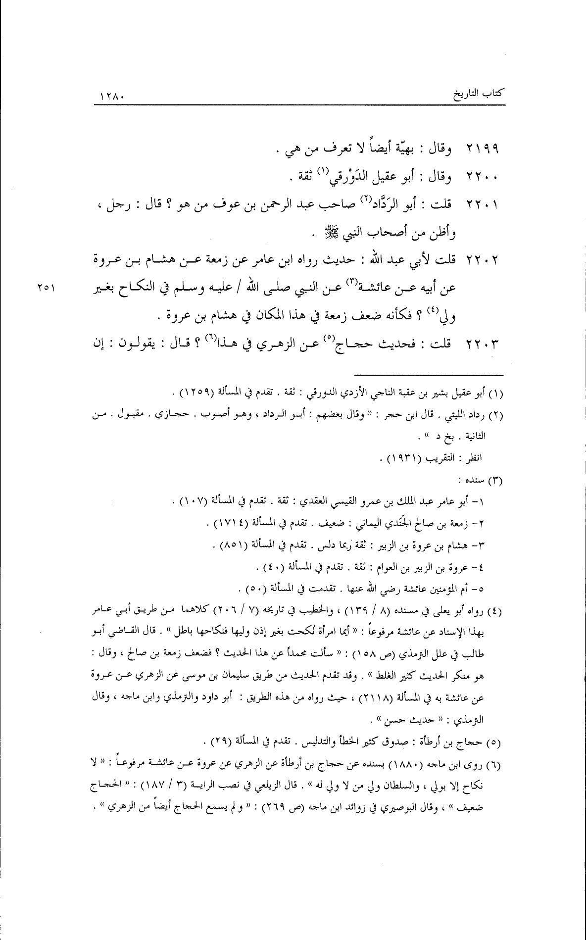 الوضوء، والأخر في كسوف الشمس ليس عندنا له صحبة ثابتة ولا نعرفه. قال: وسألتُ المديني عنه، فقال: نحوًا من هذا القول، وليس في الحديث أنه صلى مع النبي - صلى الله عليه وسلم - أو رأى النبي يتوضأ، وهو من أهل المدينة. قلت لأبي عبد الله: أبو عقيل الذي يروي عنه بُهَّية واسمه يحيى بن المتوكل مديني كيف حديثه؟ قال: وأي شيء روى هذا من الحديث يعني من قلته، فكأنه ضعفه