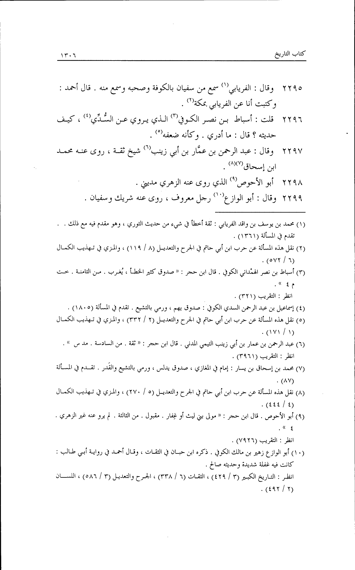 وسمعت أحمد يذكر عمرو بن مرزوق بخير. وسألتُه عن عبد الله بن خباب الذي قتلته الخوارج فقال: هو عبد الله بن خباب بن الأرت، وهو الذي يروي عن أبيِّ. قلت: فعبد الله بن خباب الذي يروي عن أبي سعيد؟ قال: هذا غير ذاك، وكأنه ليس بمشهور.