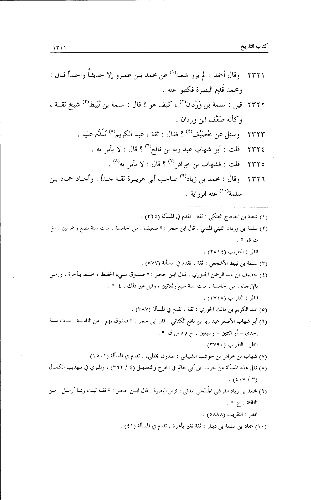 وسئل عن عبد الله بن الفضل؟ فقال: لا بأس به. وقال: ما أشبه أن يكون صالح بن كيسان أسن من الزهري. قلت: مصعب بن ثابت كيف هو؟ قال: هو رجل من قريش، وكأنه ضعفه، وهو من ولد ابن الزبير. وسمعته يقول: بلغ ابن أبي ذئب أن مالك بن أنس قال: ليس البيعان بالخيار. فقال ابن أبي ذئب: يستتاب مالك، فإن تاب وإلا ضربت عنقه.