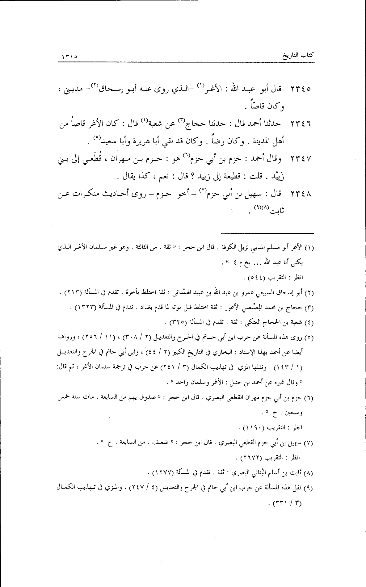 وسئل عن أحمد عن الرجل إذا سها في الإسناد فأخطأ فيه ولم يتعمد ذلك؟ قال: أرجو أن لا يكون عليه شيء. قال أبو عبد الله: عطاء قد رأى ابن عمر ولم يسمع منه، وسمع عطاء من عائشة دخل مع عبيد بن عمير. غياث بن إبراهيم متروك الحديث، وجعل أبو عبد الله غير مرة يتعجب من كثرة حديثه. قيل لأحمد: رأي الزهري أحب إليك أو رأي إبراهيم والشعبي؟ قال: كان ابن عيينة يختار رأي الزهري. قلت: فالحسن؟ قال: الحسن بخ. قال: أبو إسحاق الهمداني اسمه عمرو بن عبد الله. وسمعته يقول: هشام بن سعد ليس بمحكم الحديث. قال: محمد بن عبد الرحمن الذي روى عنه أبان بن تغلب هو محمد بن عبد الرحمن بن يزيد.