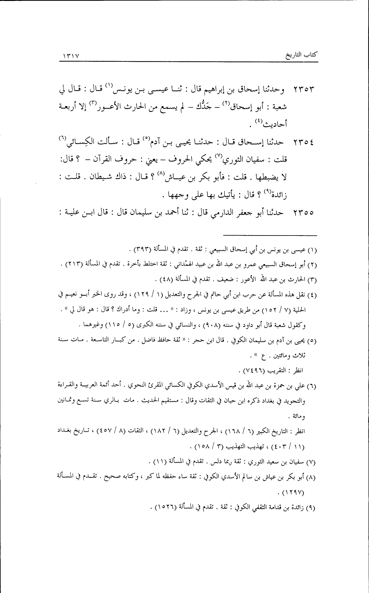 قال: ليس أحد يروي عن عطاء أثبت من عمرو وابن جريج. وقال: عباد بن راشد صالح الحديث، ووثقه. وسئل أحمد عن الرجل يطلب الإسناد العالي؟ قال: طلب الإسناد العالي سنّة عمن سلف، لأن أصحاب عبد الله كانوا يرحلون من الكوفة إلى المدينة فيتعلمون من عمر ويسمعون منه. حدثنا أحمد قال: حدثنا أبو قطن قال: ثنا أبو خلدة، عن أبي العالية قال: كنا نسمع الرواية عن أصحاب رسول الله - عليه السلام - بالبصرة فلم نرض حتى ركبنا إلى المدينة فسمعناها من/255/أفواههم.