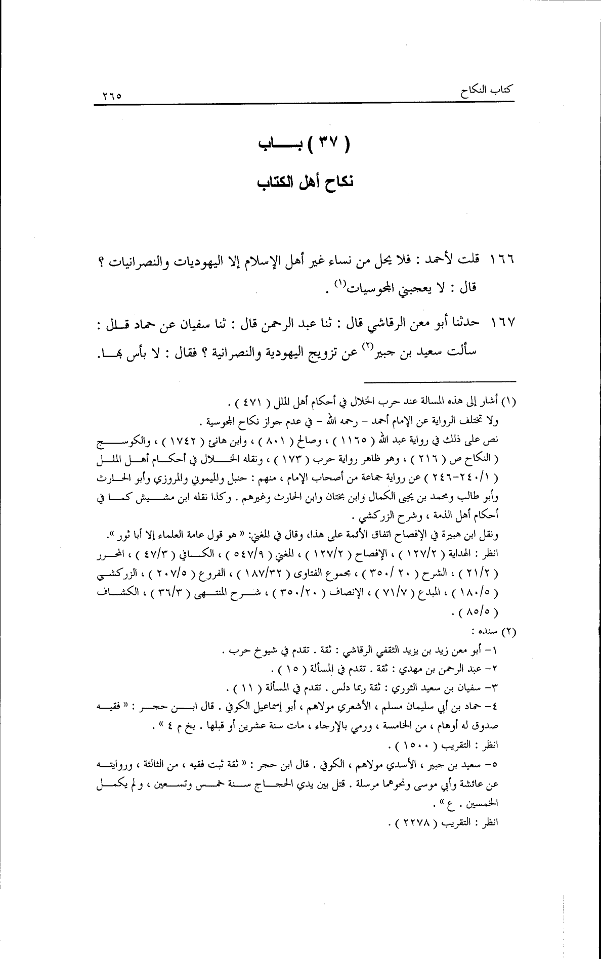 حدثنا أبو معن الرقاشي، قال: ثنا عبد الرحمن، قال: ثنا سفيان، عن حماد قال: سألت سعيد بن جبير، عن تزويج اليهودية والنصرانية، فقال: لا بأس بها،