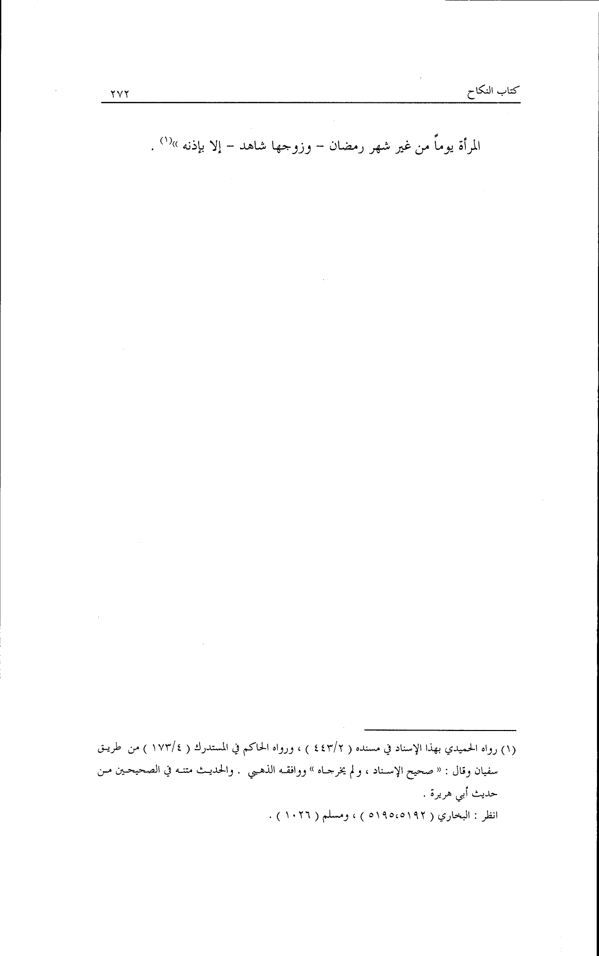 المرأة يومًا من غير شهر رمضان، وزوجها شاهد إلا بإذنه)).