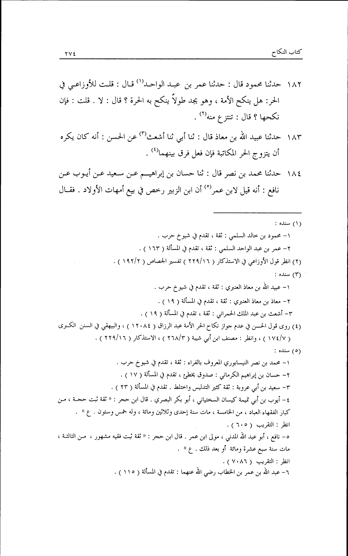 قال: قلت للأوزاعي في الحر، هل ينكح الأمة، وهو يجد طولا ينكح به الحرة؟