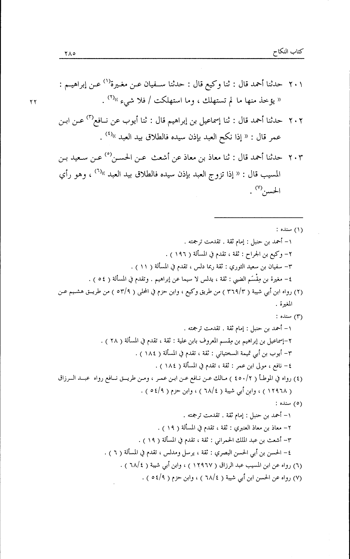 حدثنا أحمد، قال: بنااسماعيل بن إبراهيم، قال: ثنا أيوب، عن نافع، عن ابن عمر: قال: إذا نكح العبد بإذن سيده، فالطلاق بيد العبد.
