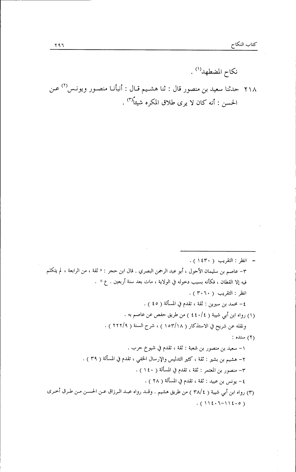 حدثنا سعيد بن منصور، قال: ثنا هشيم، قال: ثنا منصور ويونس، عن الحسن: أنه كان لا يرى طلاق المكره شيئًا.