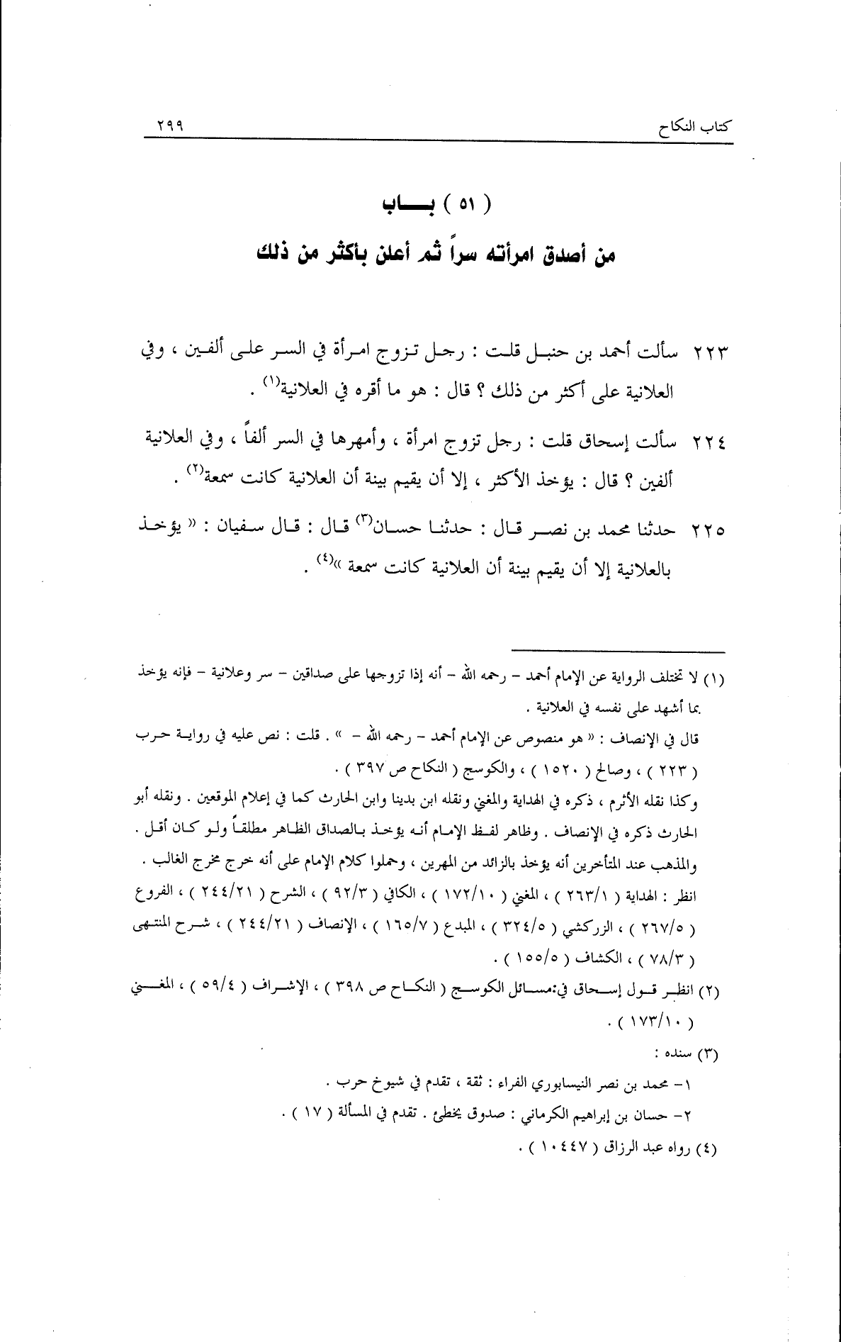 سألتُ إسحاق، قلتُ: رجل يتزوج امرأةً، وأمهرها في السر ألفًا، وفي العلانية ألفين؟