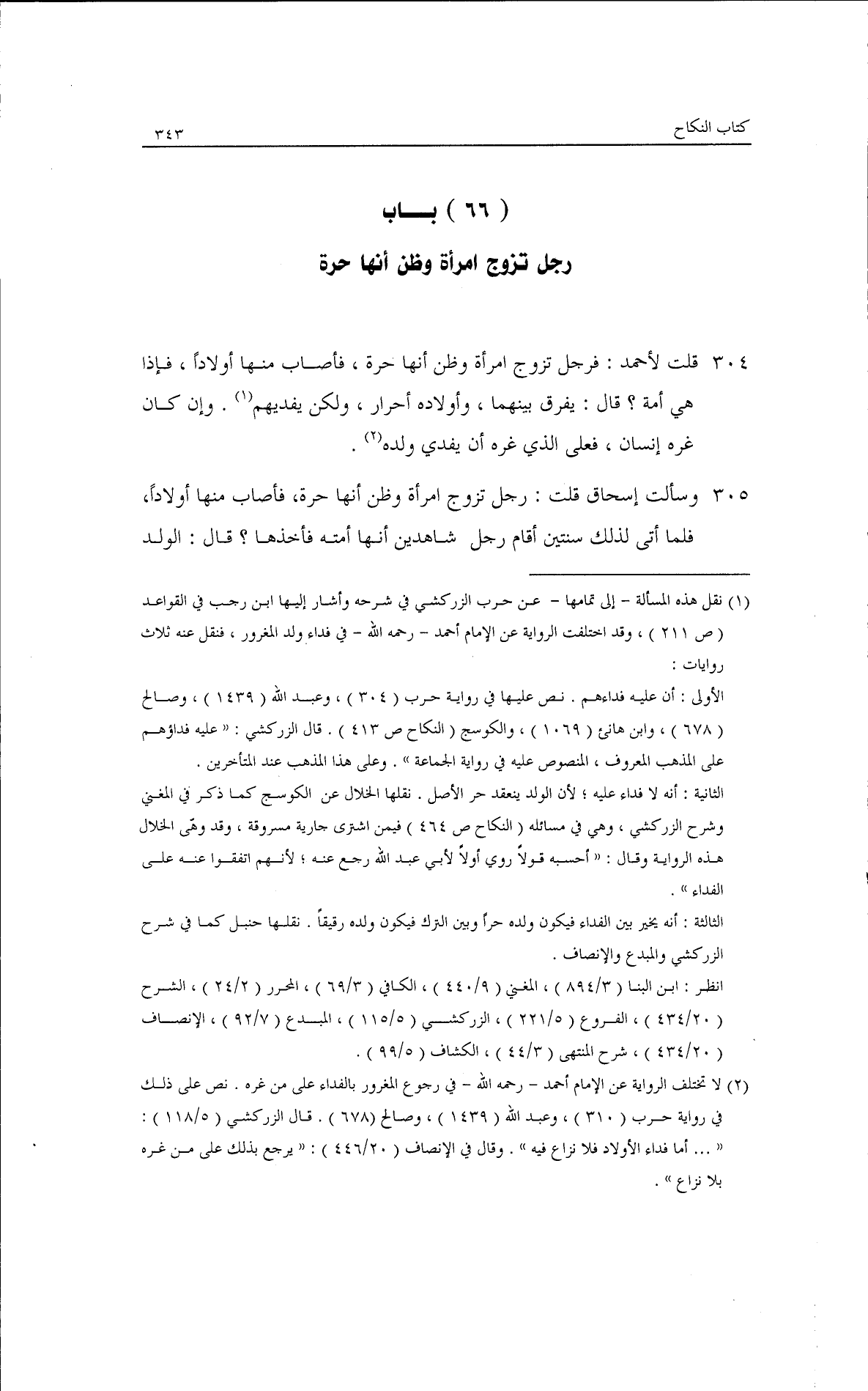قال: يفرق بينهما، وأولاده أحرار، ولكن يفديهم، وإن كان غَرَّه إنسان فعلى الذي غرَّه أن يفدي ولده، وسألتُ إسحاق، قلتُ: رجلٌ تَزَوَّجَ امرأةً وظن أنها حرة، فأصاب منها أولادًا، فلما أتى لذلك سنتين، أقام رجل شاهدين أنها أمته، فأخذها؟