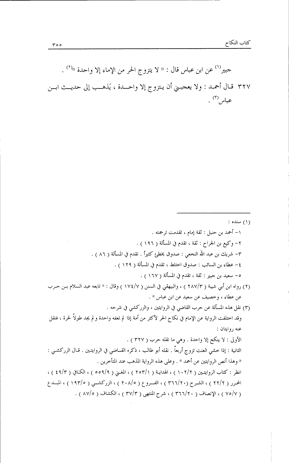 جبير، عن ابن عباس قال: لا يتزوج الحر من الإماء إلا واحدة.