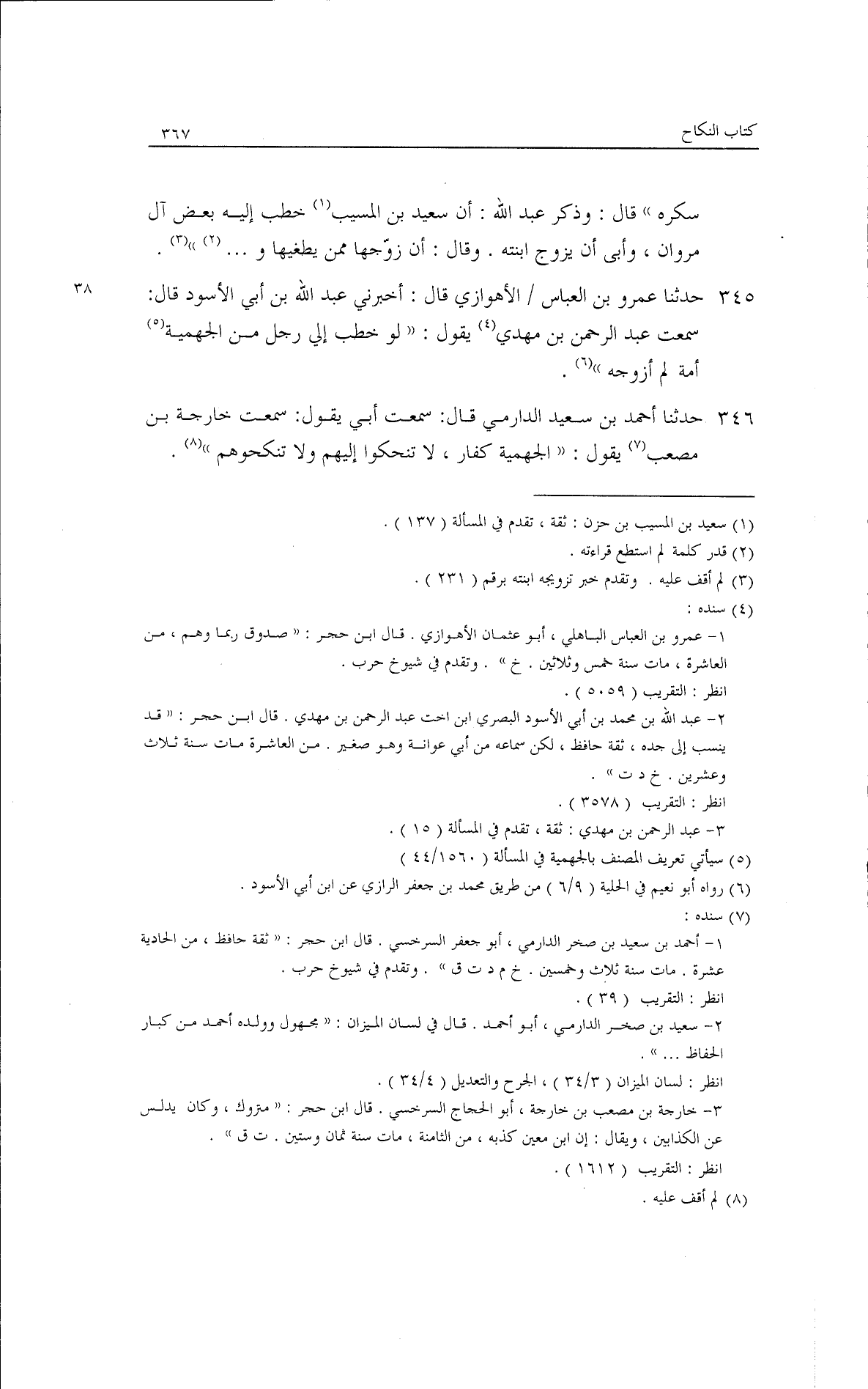 حدثنا عمرو بن العباس/38/الأهوازى قال: أخبرني عبد الله بن أبي الأسود، قال: سمعت عبد الرحمن بن مهدى يقول: لو خطب إليّ رجل من الجهمية أَمَةً لم أزوجه.
