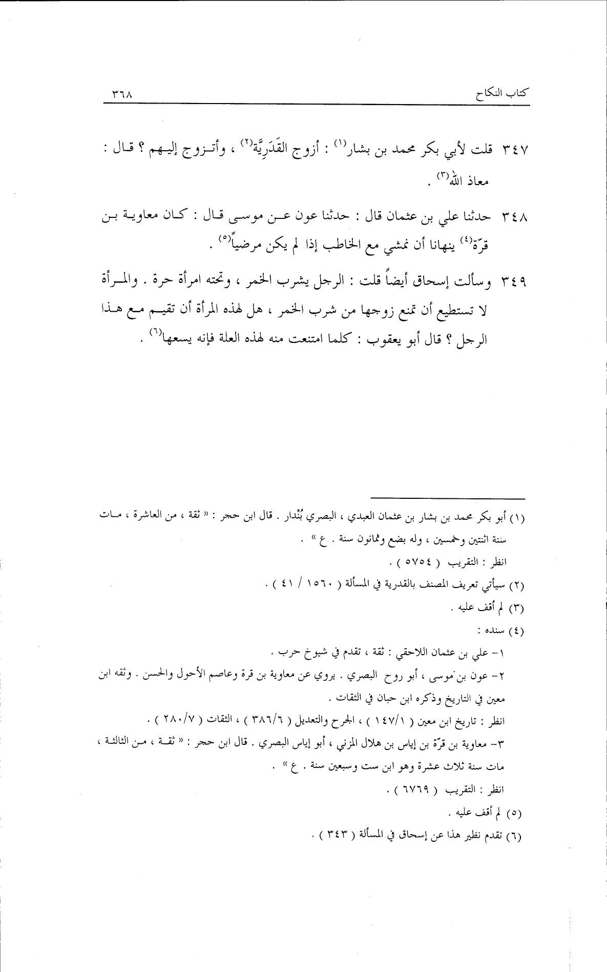 قلت لأبي بكر محمد بن بشار: أزوِّج القدرية وأتزوج إليهم؟