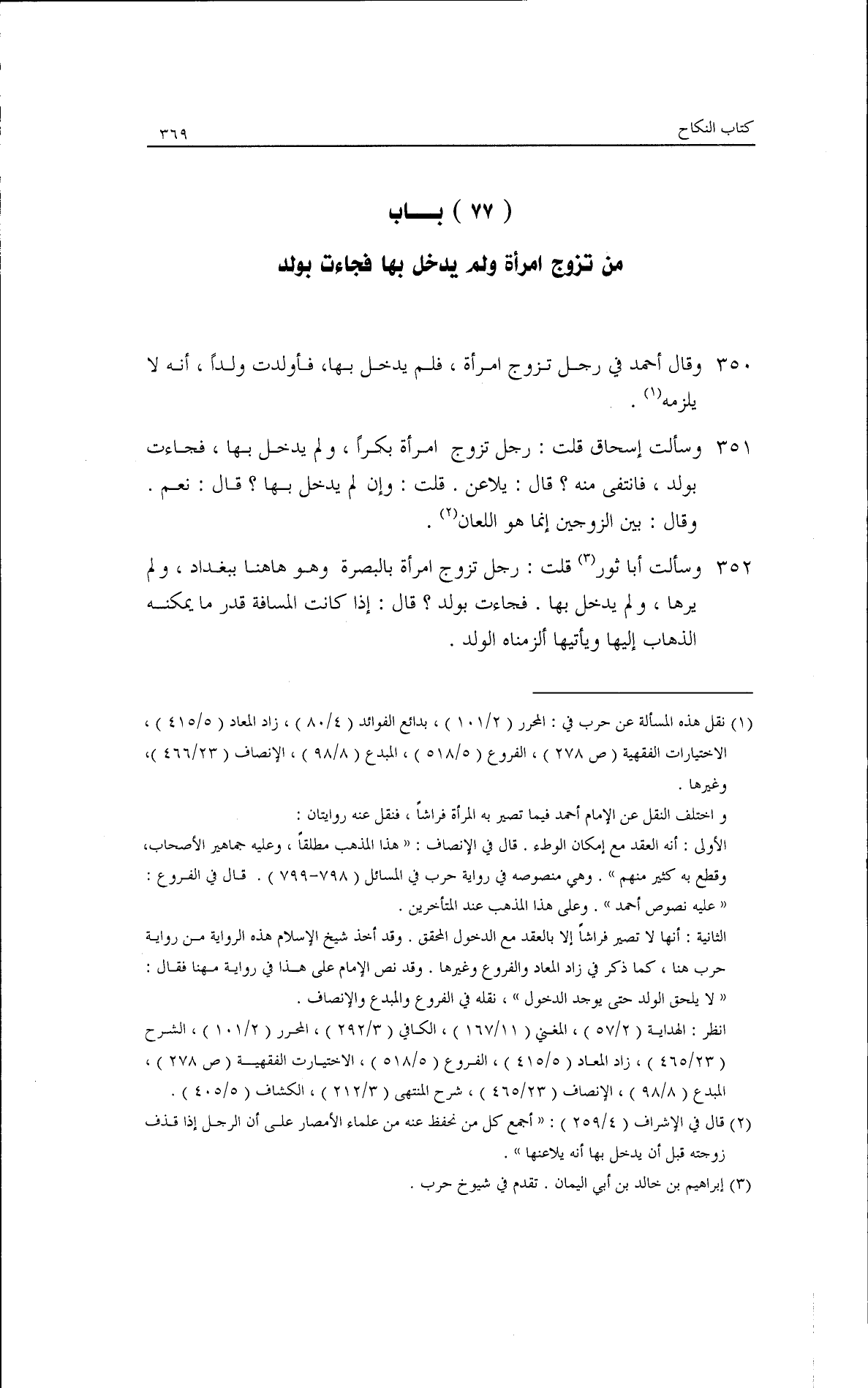 وسألت أبا ثور: قلتُ: رجلٌ تَزَوَّجَ امرأةً بالبصرة وهو هاهنا ببغداد، ولم يرها ولم يدخل بها، فجاءت بولدٍ؟