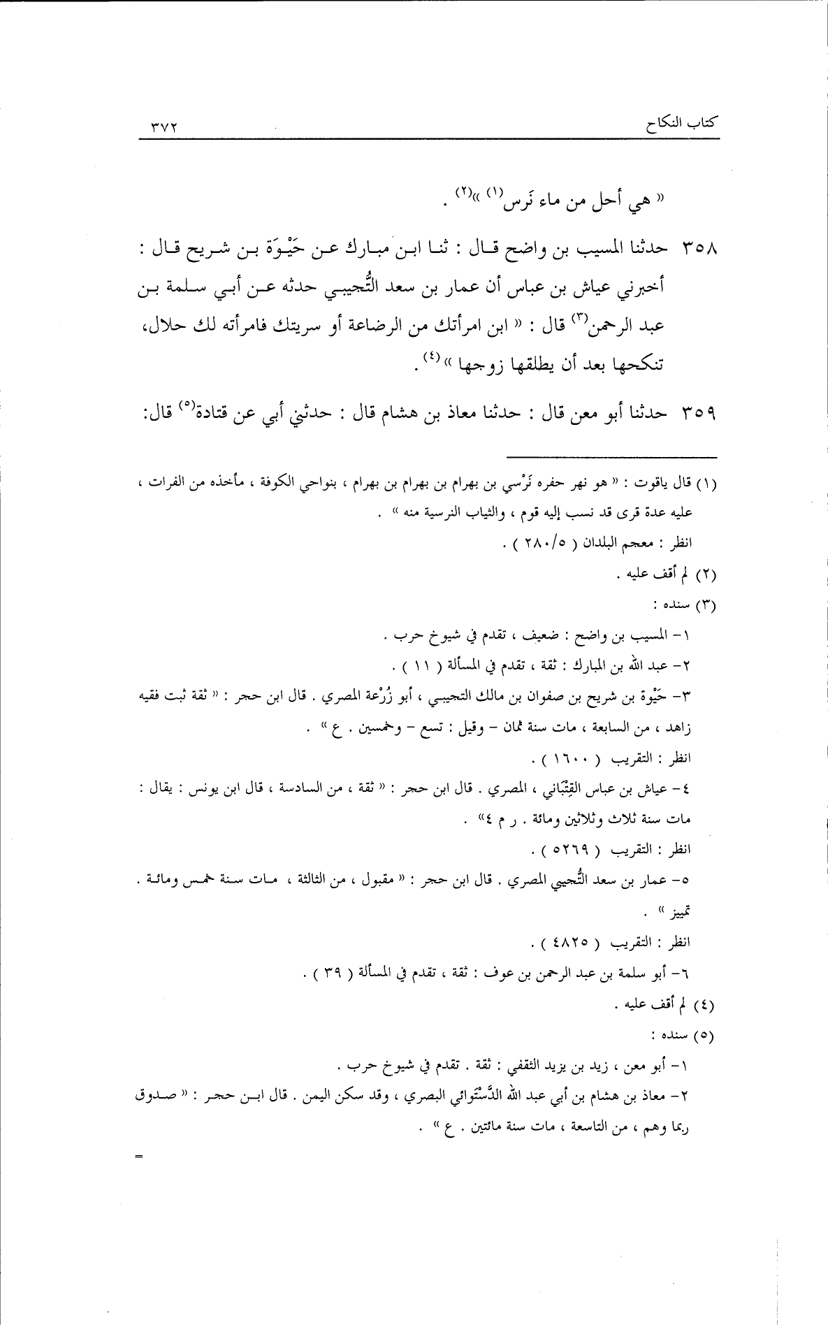 حدثنا المسيب بن واضح: قال: ثنا بن مبارك، عن حيوة بن شريح، قال: أخبرني عياش بن عباس أن عمار بن سعد التجيبي حدثه، عن أبي سلمة بن عبد الرحمن، قال: ابن امرأتك من الرضاعة، أو سريتك فامرأته لك حلال تنكحها بعد أن يطلقها زوجها.