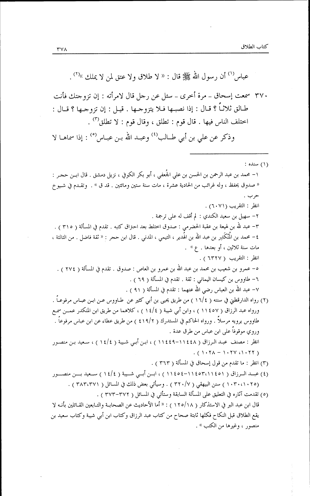 سمعت إسحاق مرة أخرى سئل عن رجل قال لامرأته إن تزوجتك فأنت طالق ثلاثًا؟